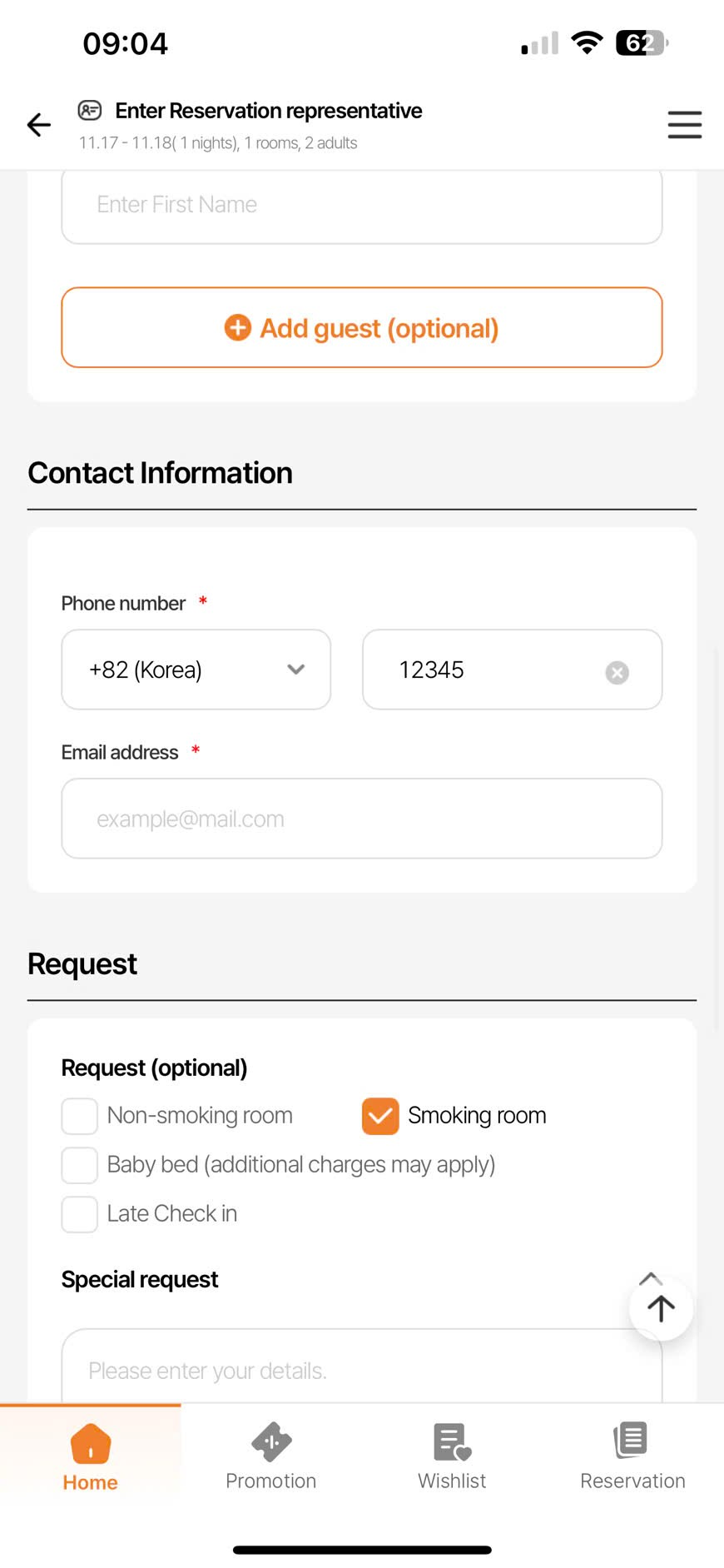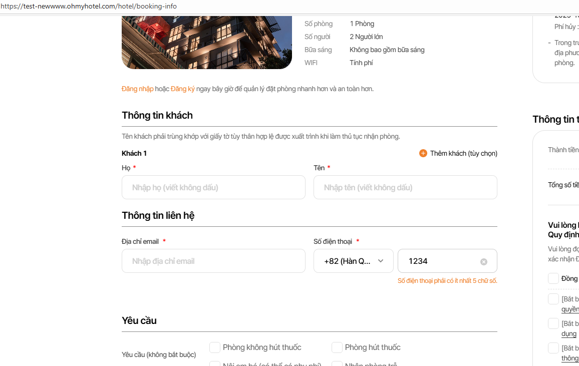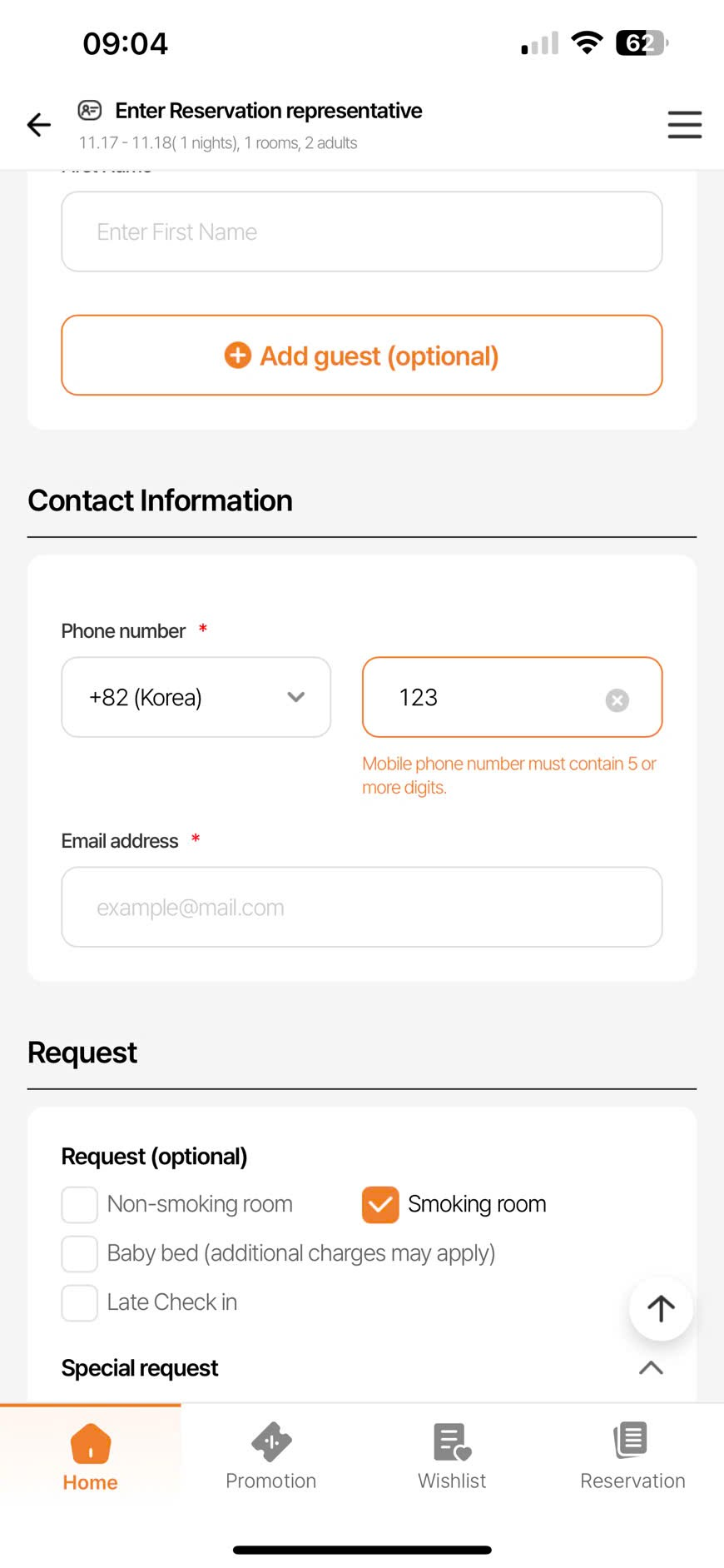 PC/MO- Guest information - Phone number field