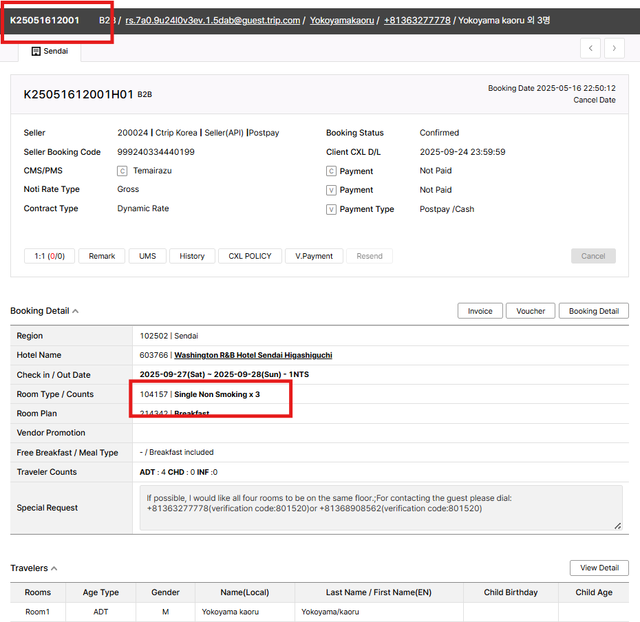 Kindly help us to amend the number of room of this booking K25051612001H01 as follows: