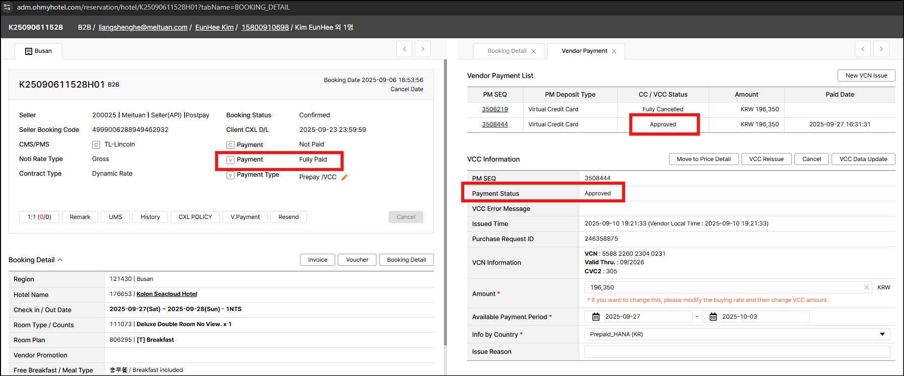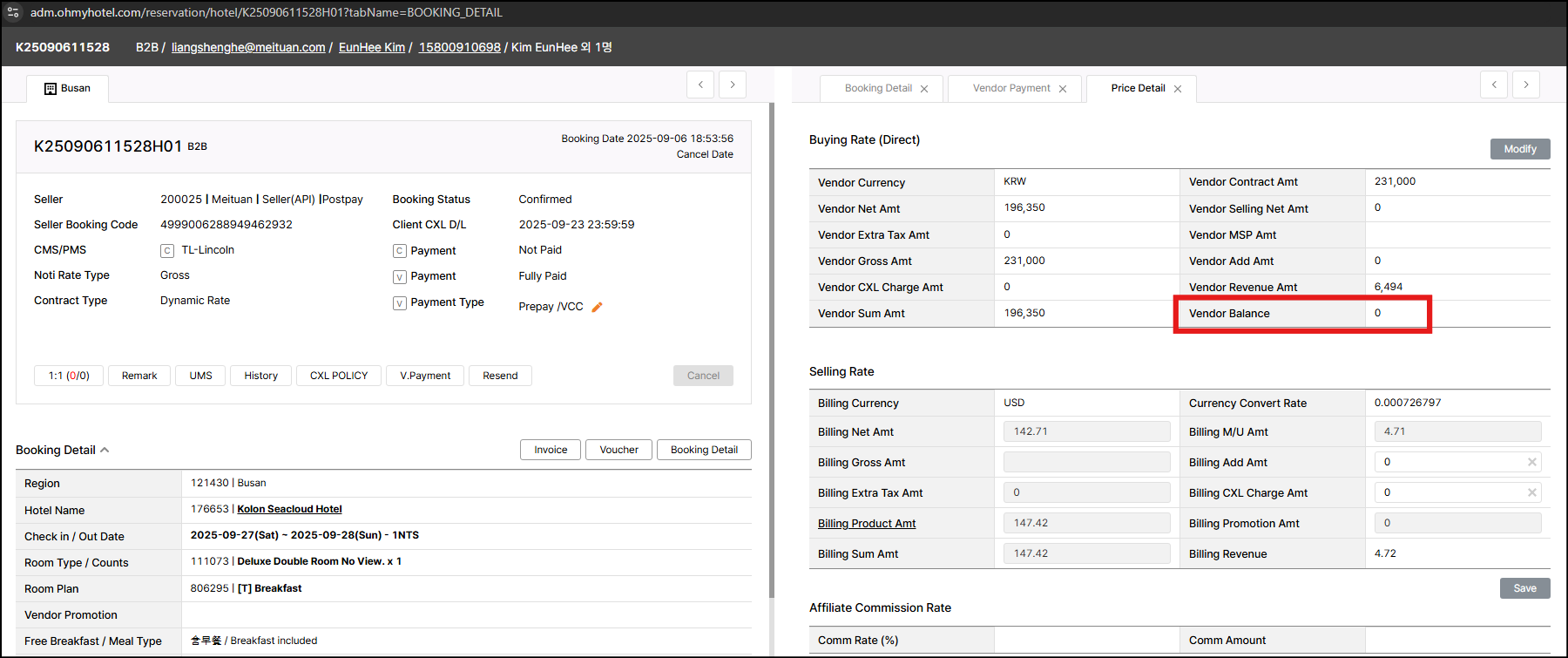 closed[VOC]: [KR SCM] Please amend the buying rate - K25090611528H01 // Kolon Seacloud Hotel