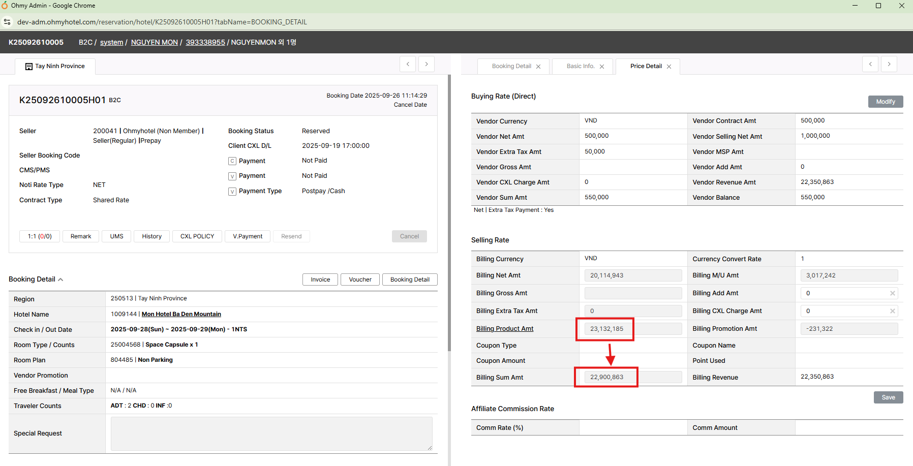 This problem wrong between the max cancellation policy charge difference with the billing Sum Amount