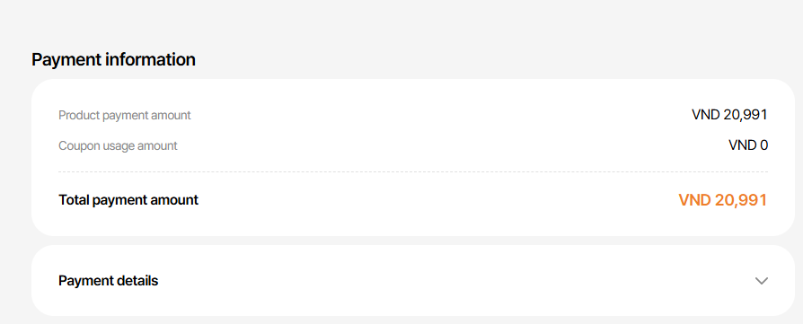 Payment amount: VND 20,991