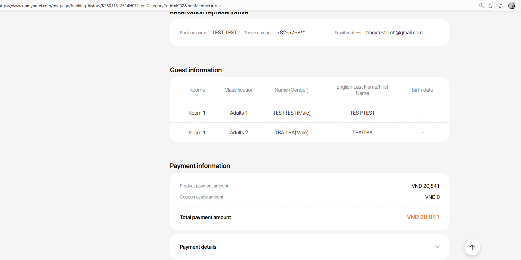 Payment amount: VND 20,841