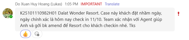 Reason: Hotel allowed to amend this booking due to wrong date and AGT confirmed.