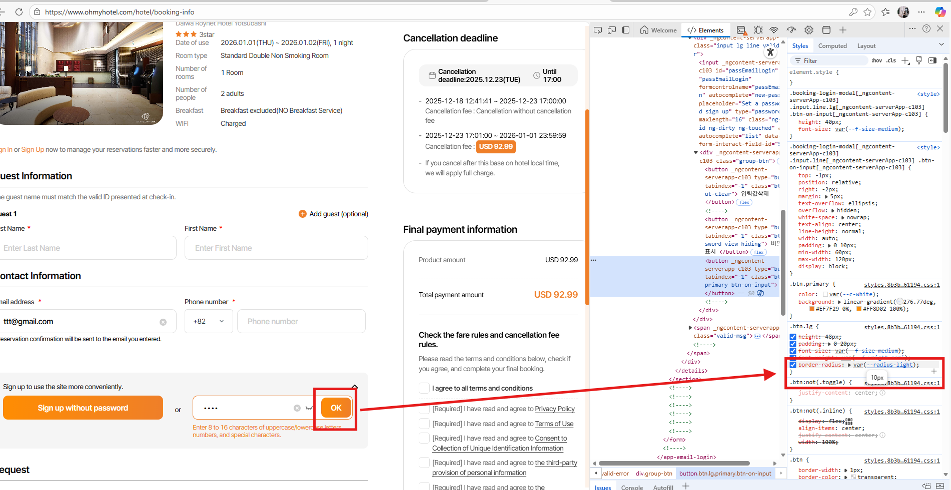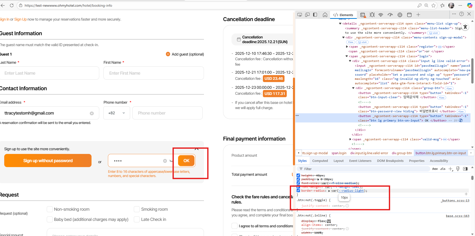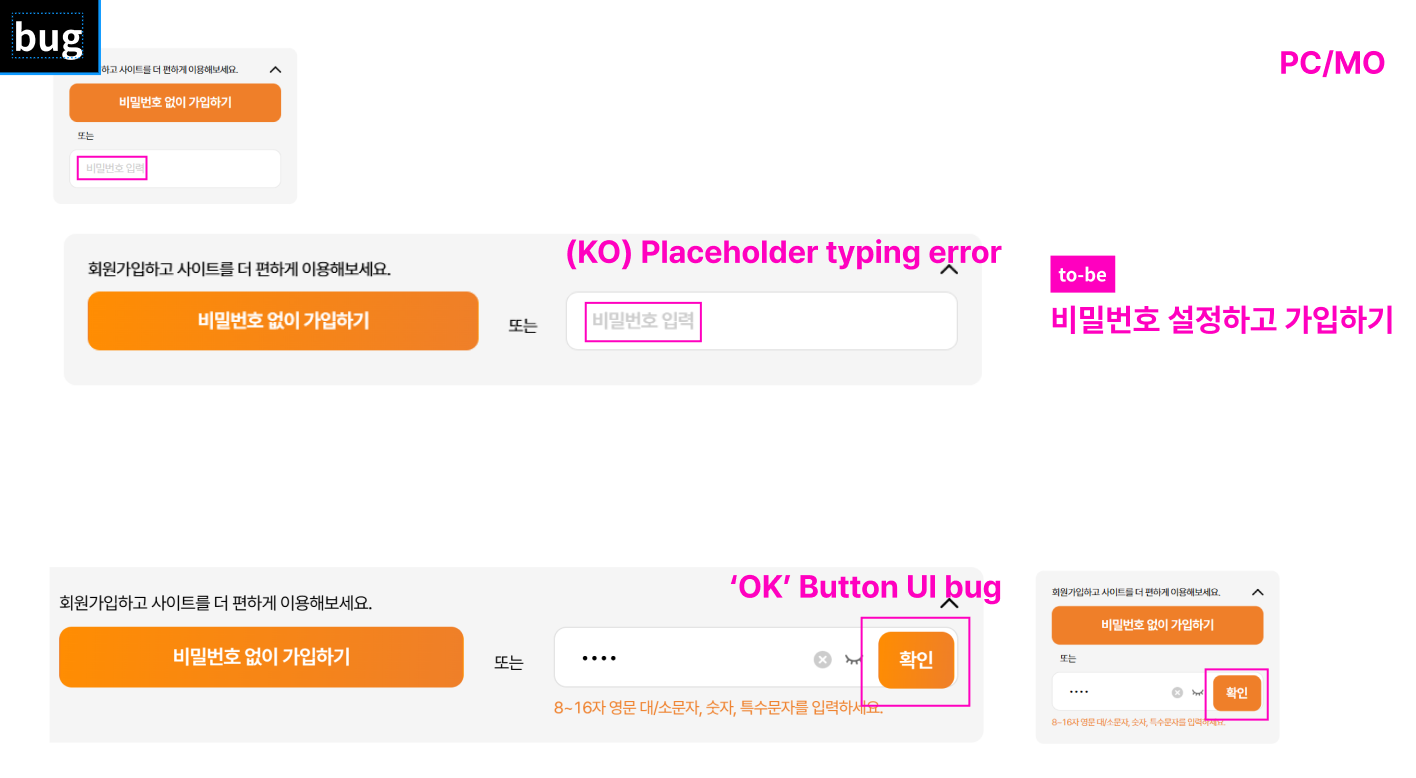 1. Chang text: > 비밀번호 설정하고 가입하기