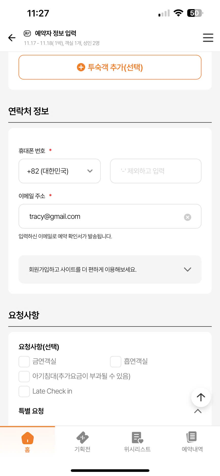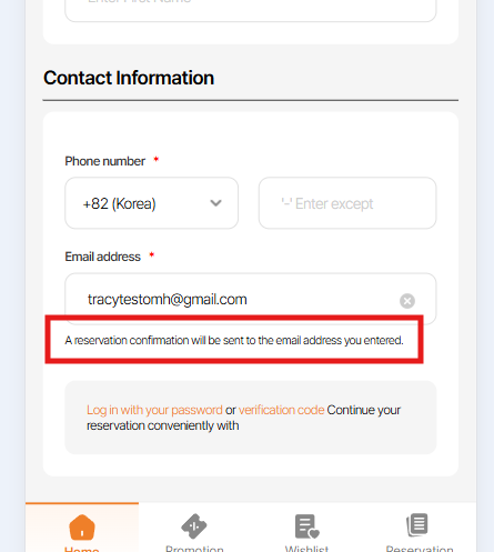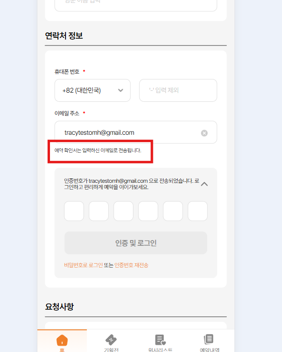 ”예약 확인서는 입력하신 이메일로 전송됩니다.”