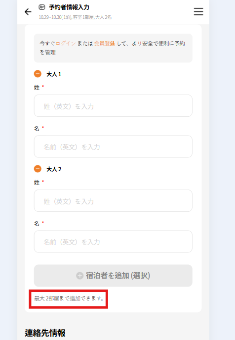 3: JP ver: wronng text, add guest but message is "最大 2部屋まで追加できます。" - you can add up to 2 rooms. Please fix it
