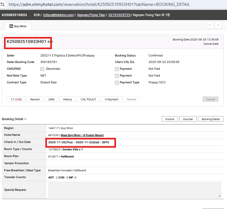 Changed check-in/out : 20 Nov - 22 Nov (2N)