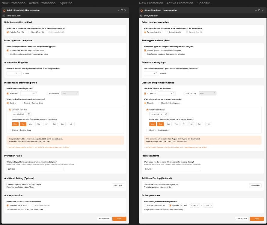 Implement UI for Create new promotion. Please refer to page 23 -> 80 in document [[https://ohmylab-my.sharepoint.com/:p:/g/personal/ha_kang_ohmyhotel_com/ERDxW1l17BlIkrJB3W7Zj9oBQi-rv8dvK8Mlxw6nPikE4Q?wdOrigin=TEAMS-MAGLEV.p2p_ns.rwc&wdExp=TEAMS-TREATMENT&wdhostclicktime=1759222138513&web=1]]