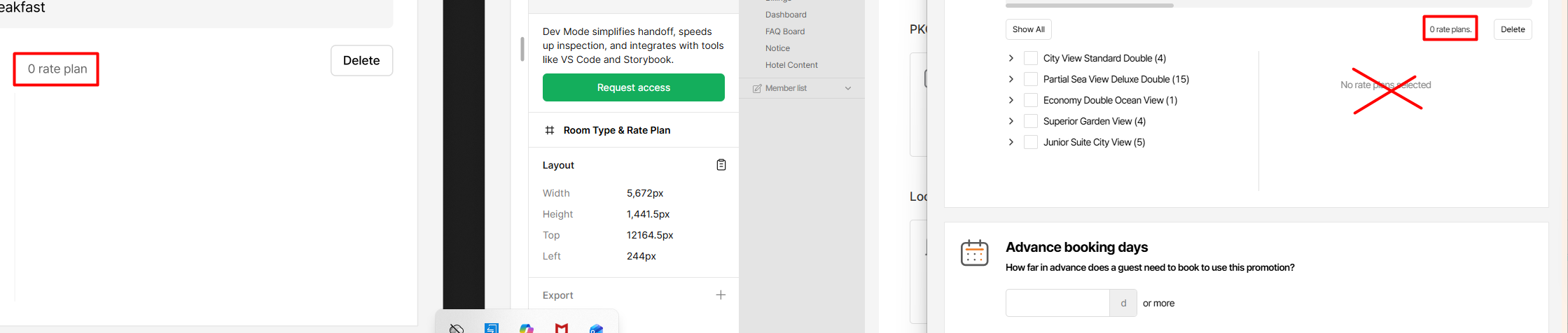 8. Remove 'dot', should show 0 rate plan at the left and delete the text 'No rate plans selected' according to the design