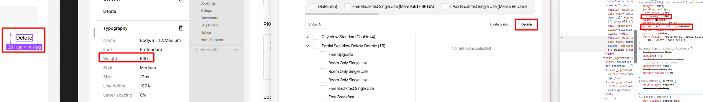 9. Delete button: font-weight: 500; border: #DCDCDC