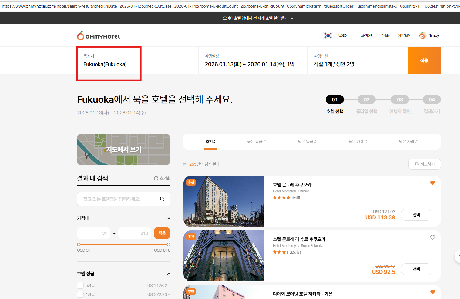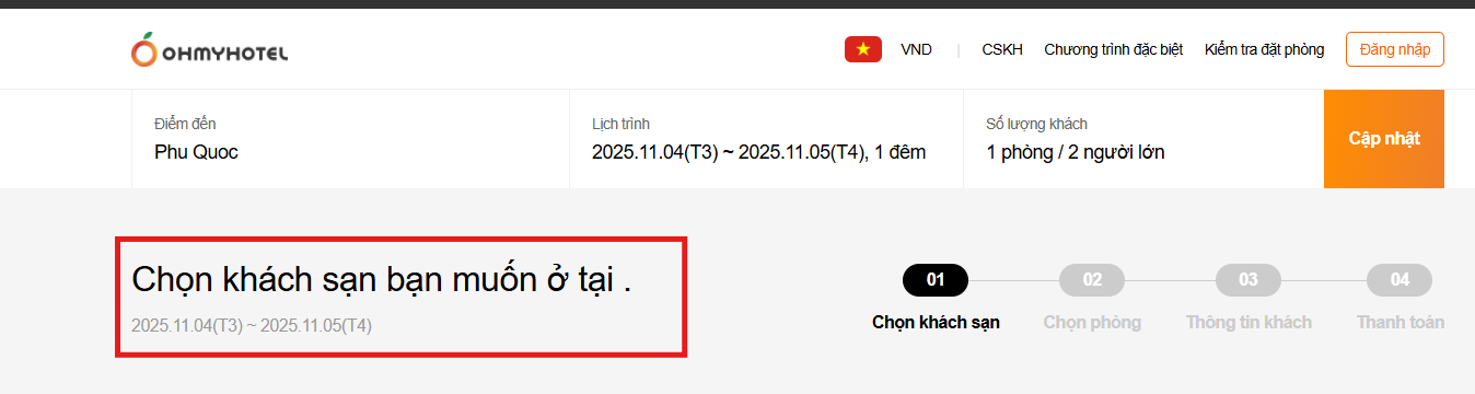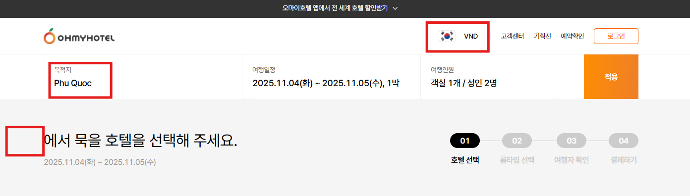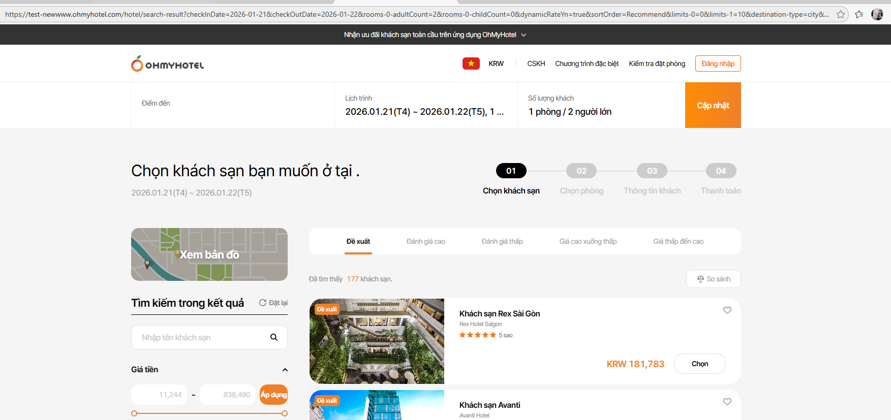 2. Setting Language KR > Click Region on OHMY's Top Travel Spots > change language to VI > all content is changed but Destination name in text Select a hotel to stay at ... not change