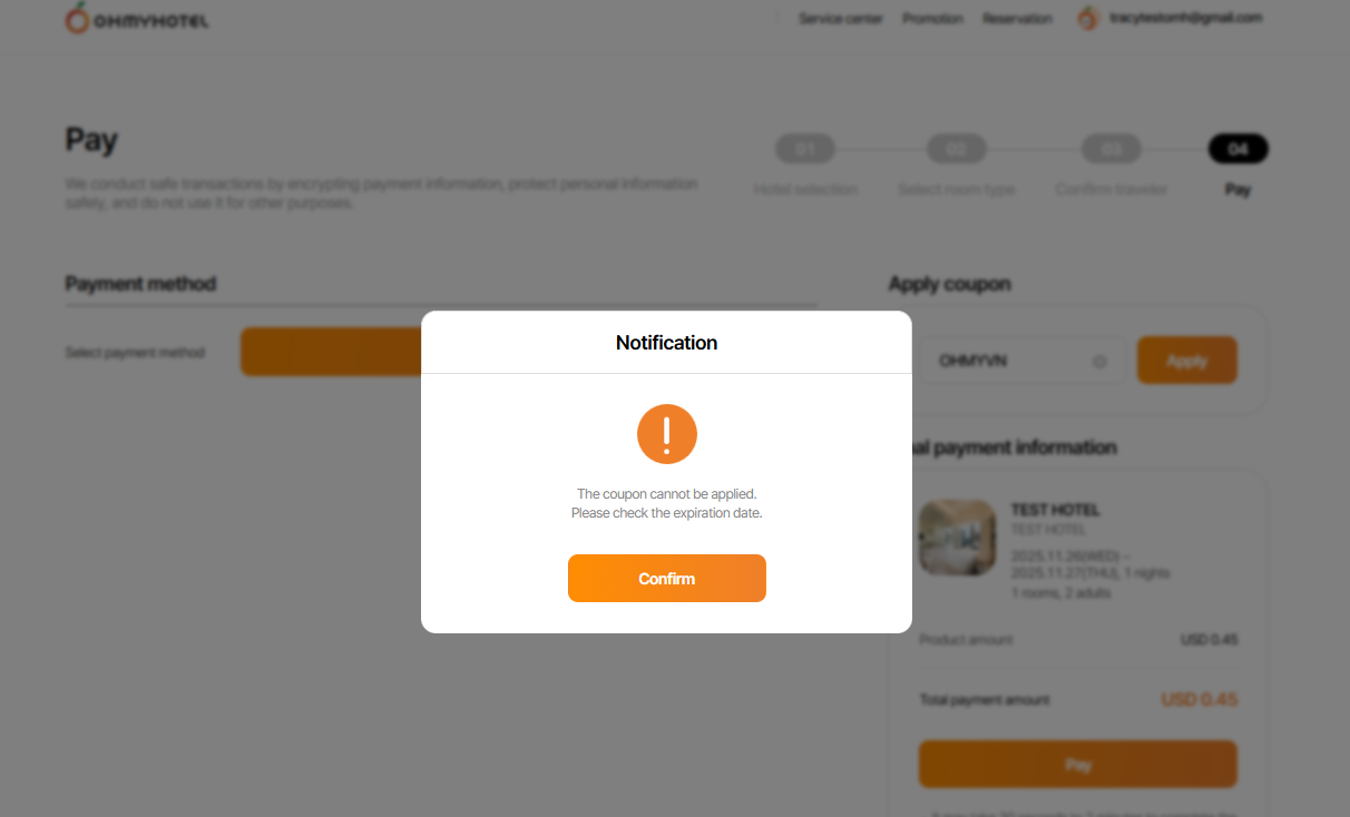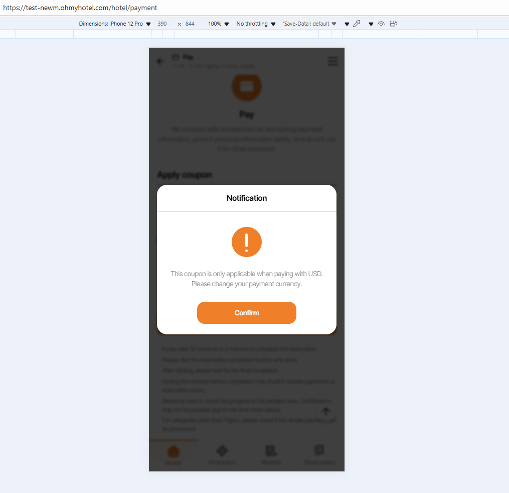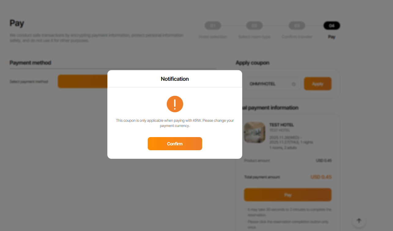 2-3. Payment Currency is not correspond to coupon currency => ok