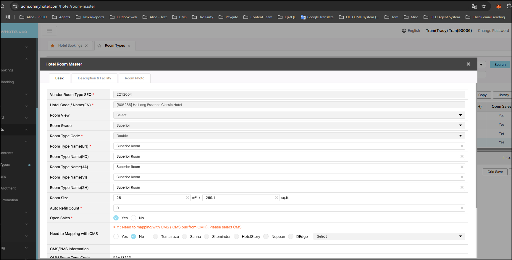 Please kindly assist to change the Room type Code of 805285 - Ha Long Essence Classic Hotel as below: