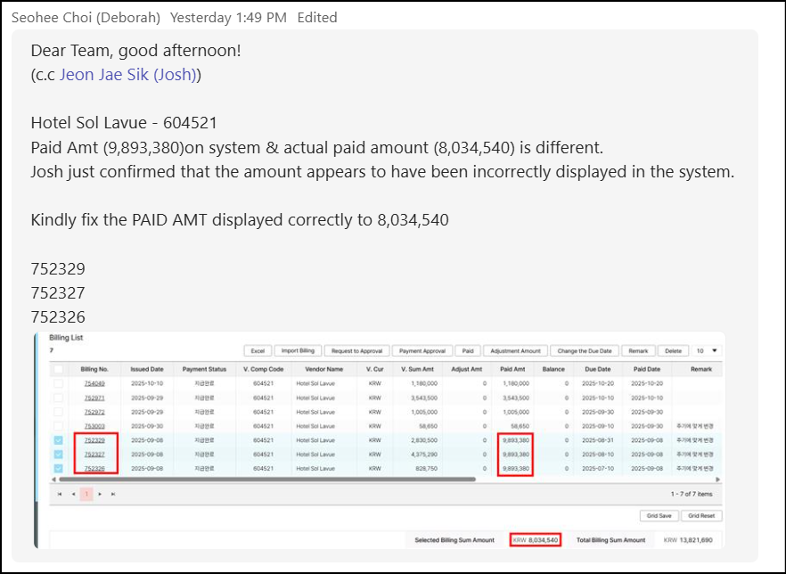 Billing update data - paid amount is different with V.Sum amount