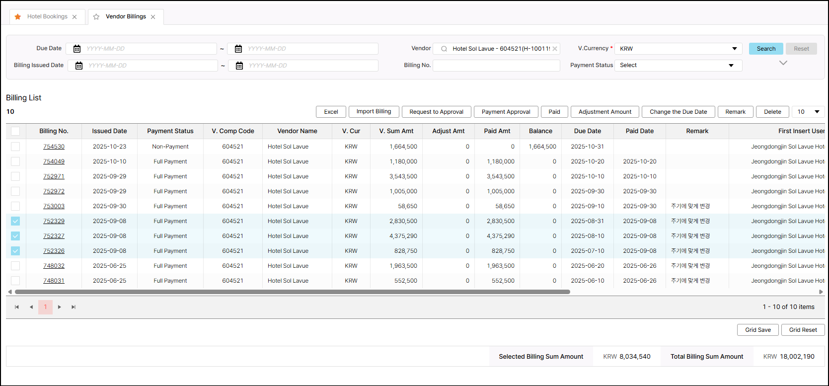 Please check and update the Paid amount same as V.Sum Amount for these billings.