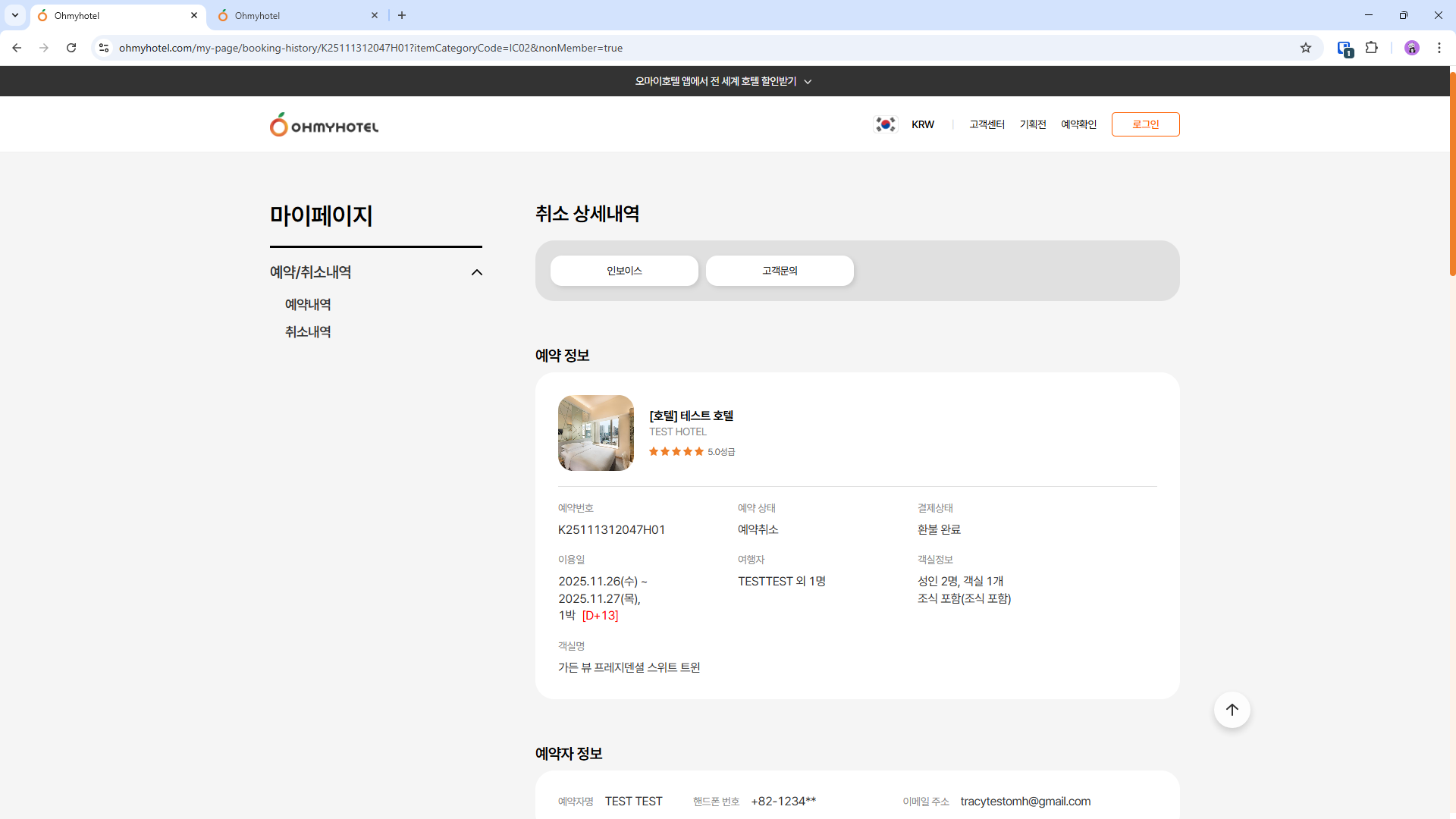 - Nếu trạng thái đặt chỗ là “đã hủy” → tên trang hiển thị là “취소 상세내역”