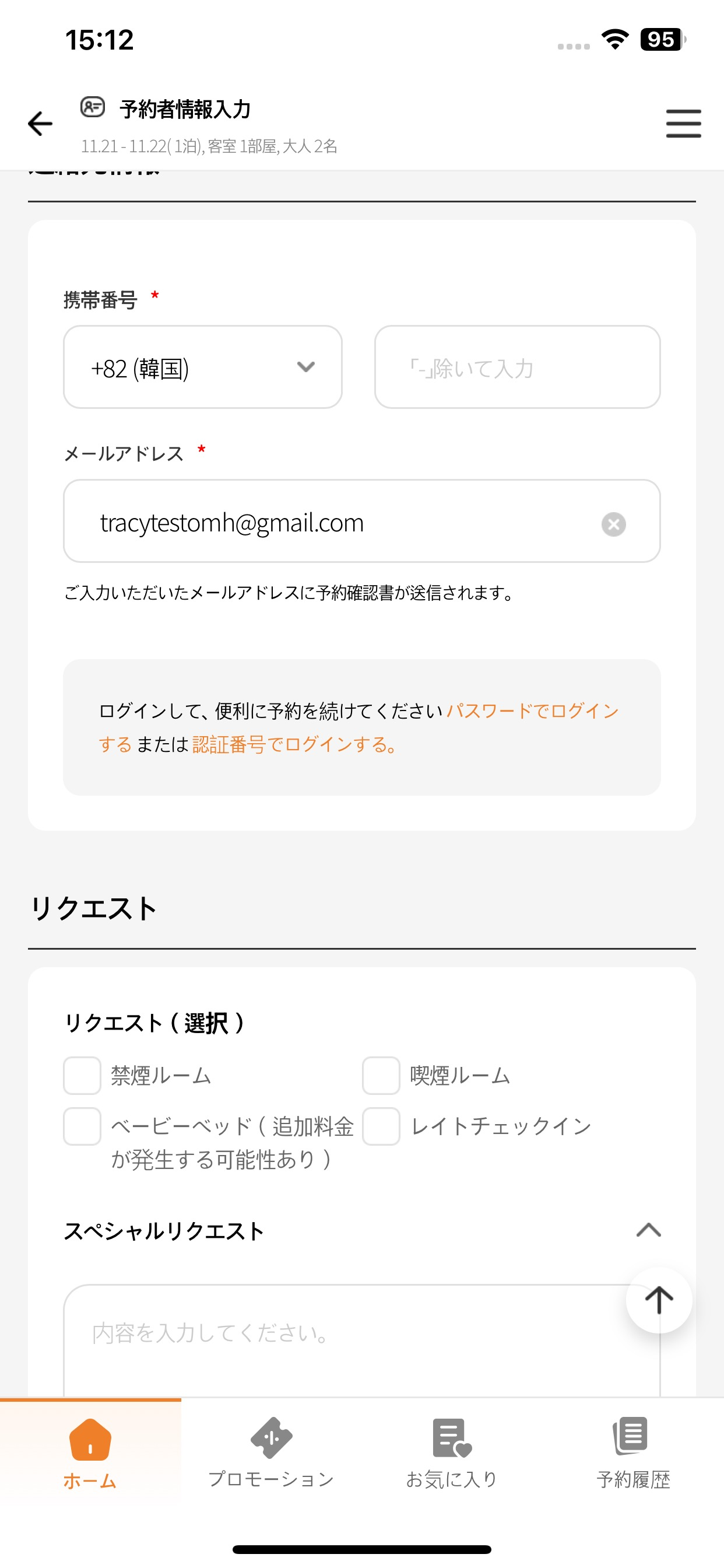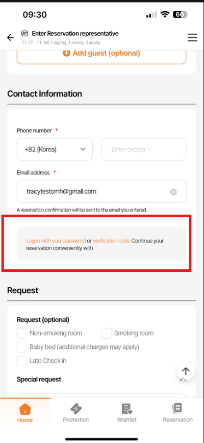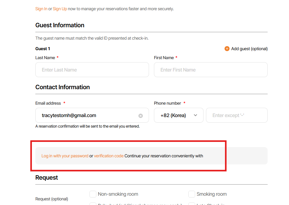 Log in with your password or verification code Continue your reservation conveniently with