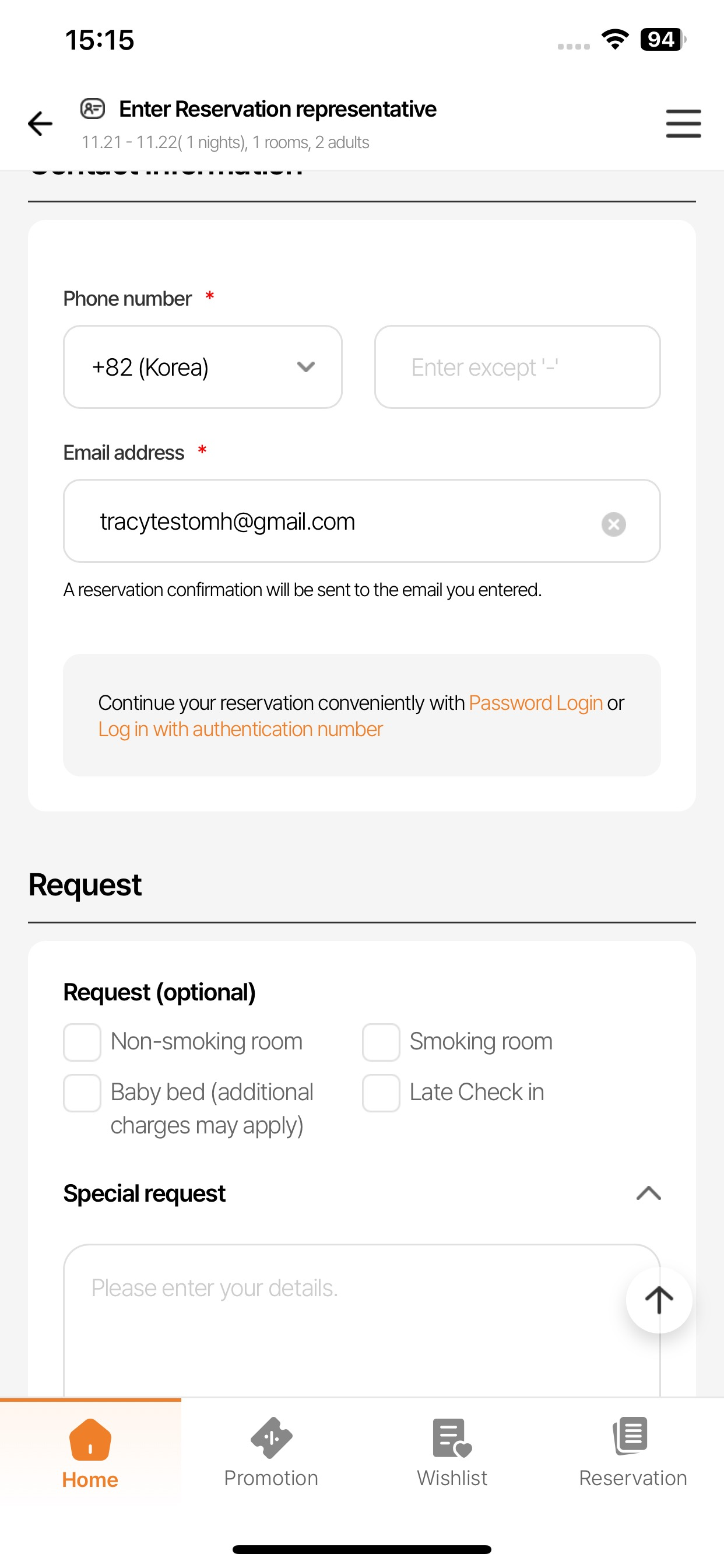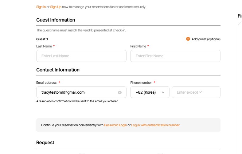 As-is: Password Login or Log in with authentication number Continue your reservation conveniently with