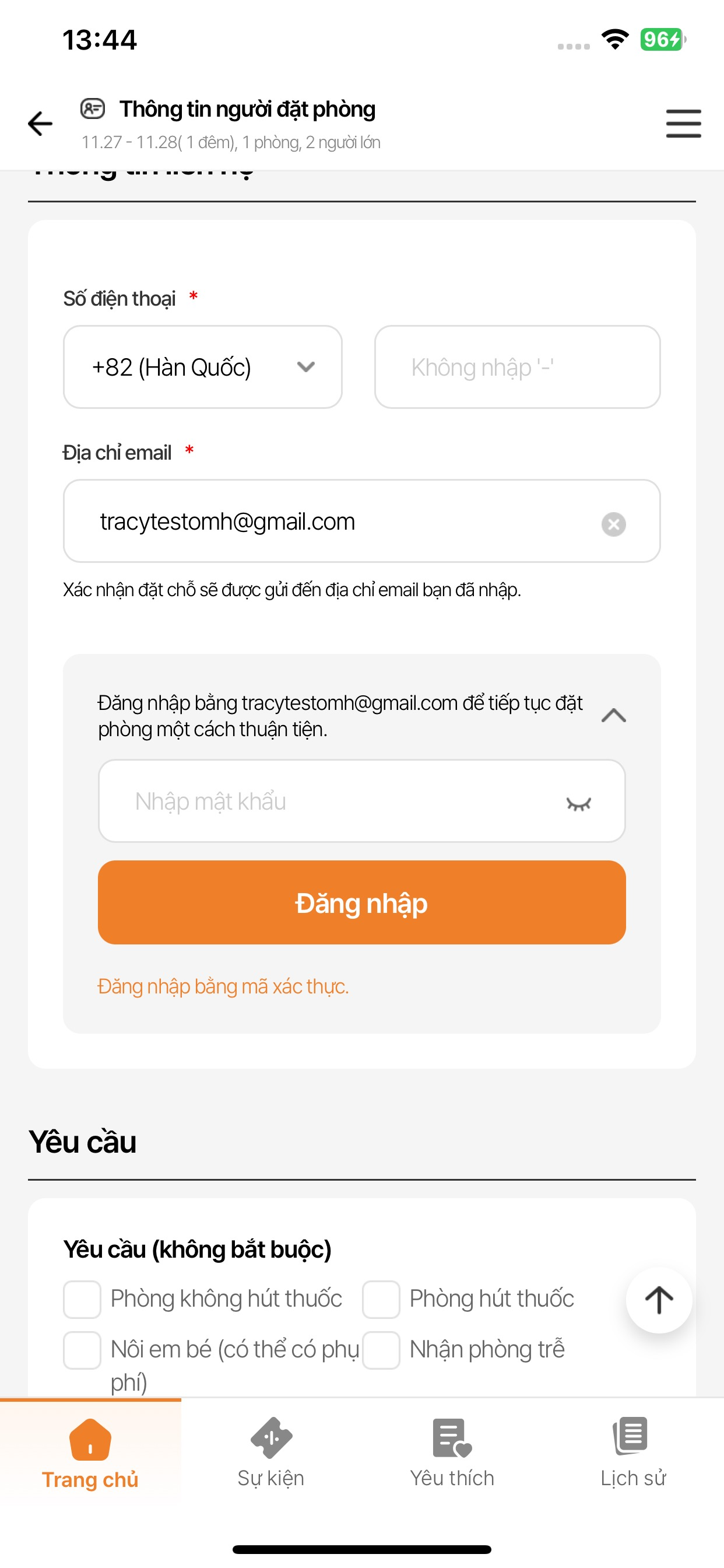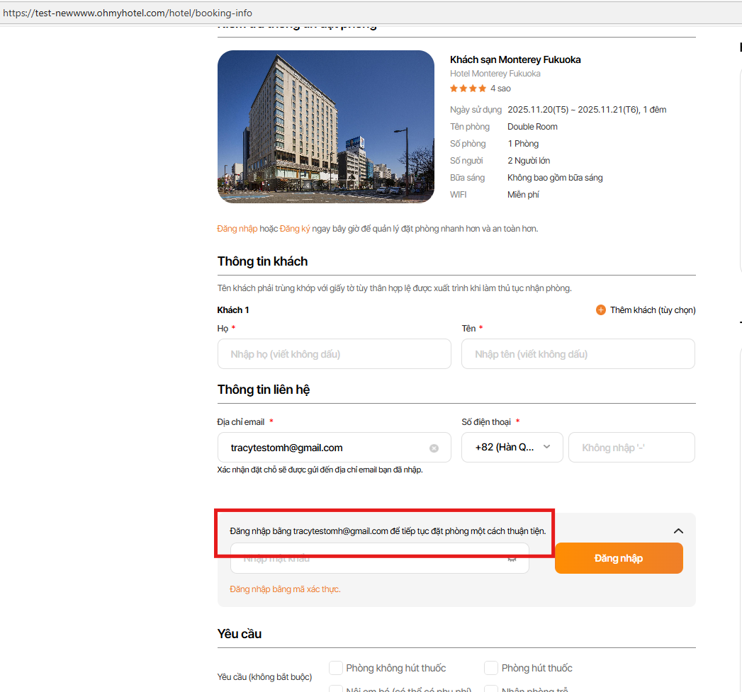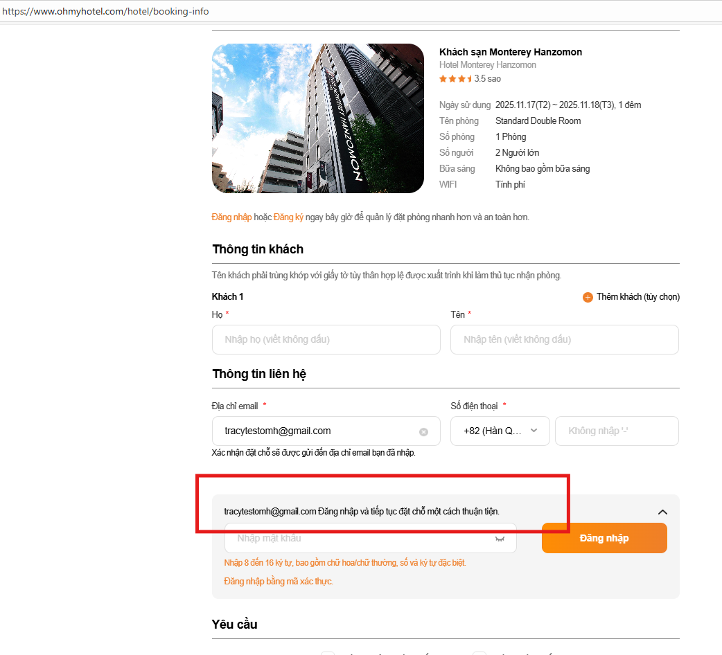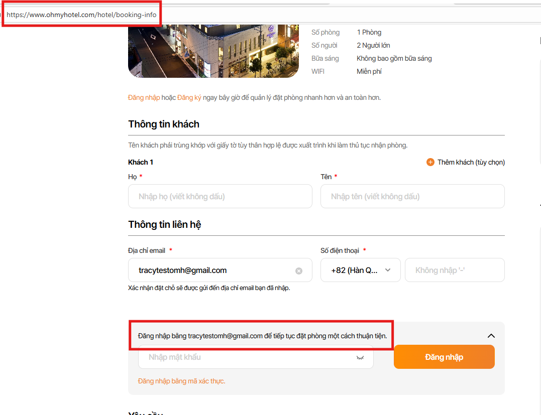 As is: <user email> Đăng nhập và tiếp tục đặt chỗ một cách thuận tiện.