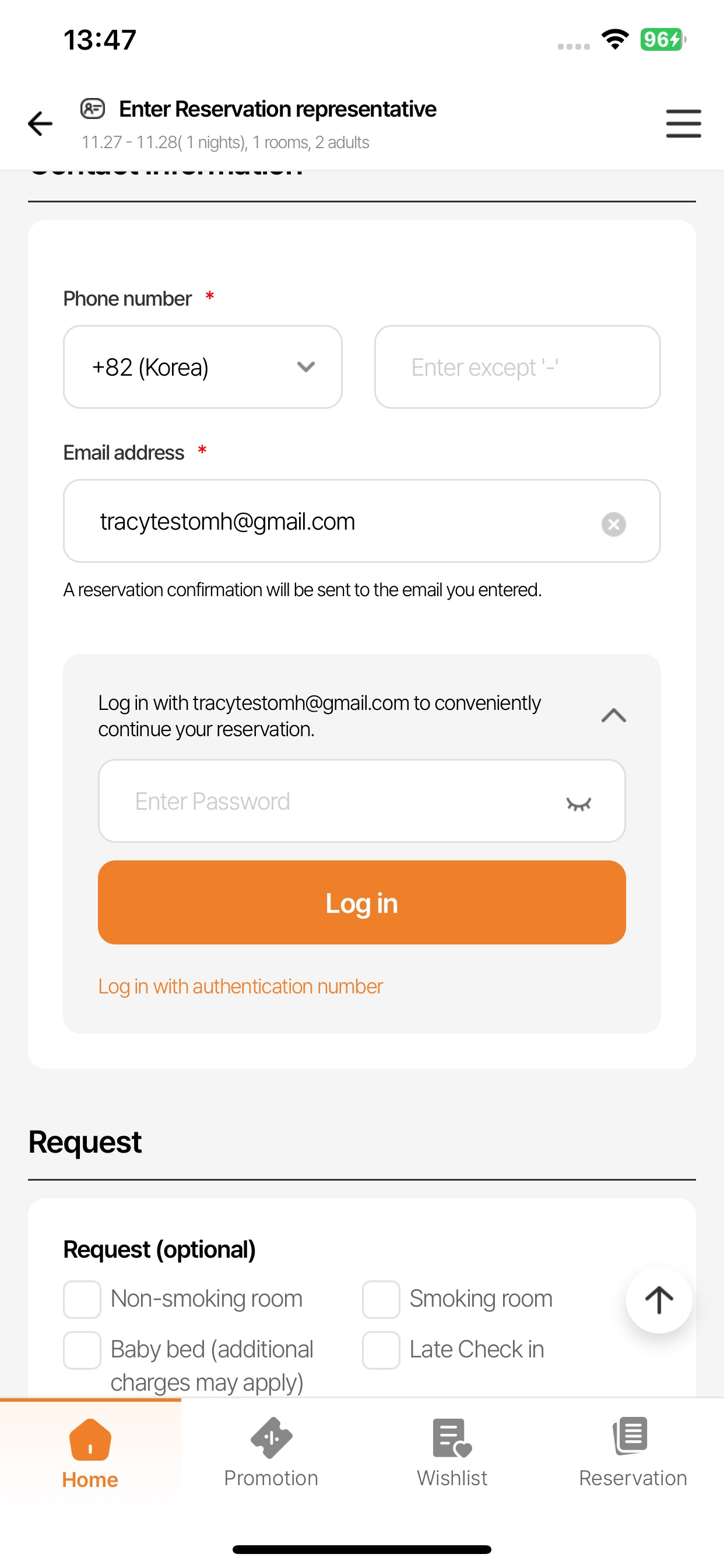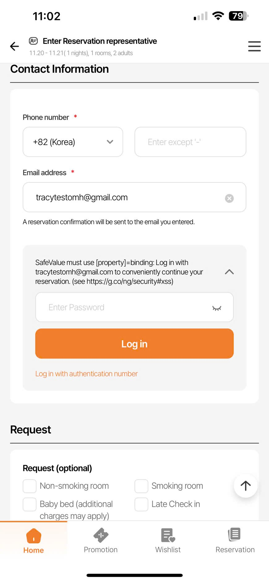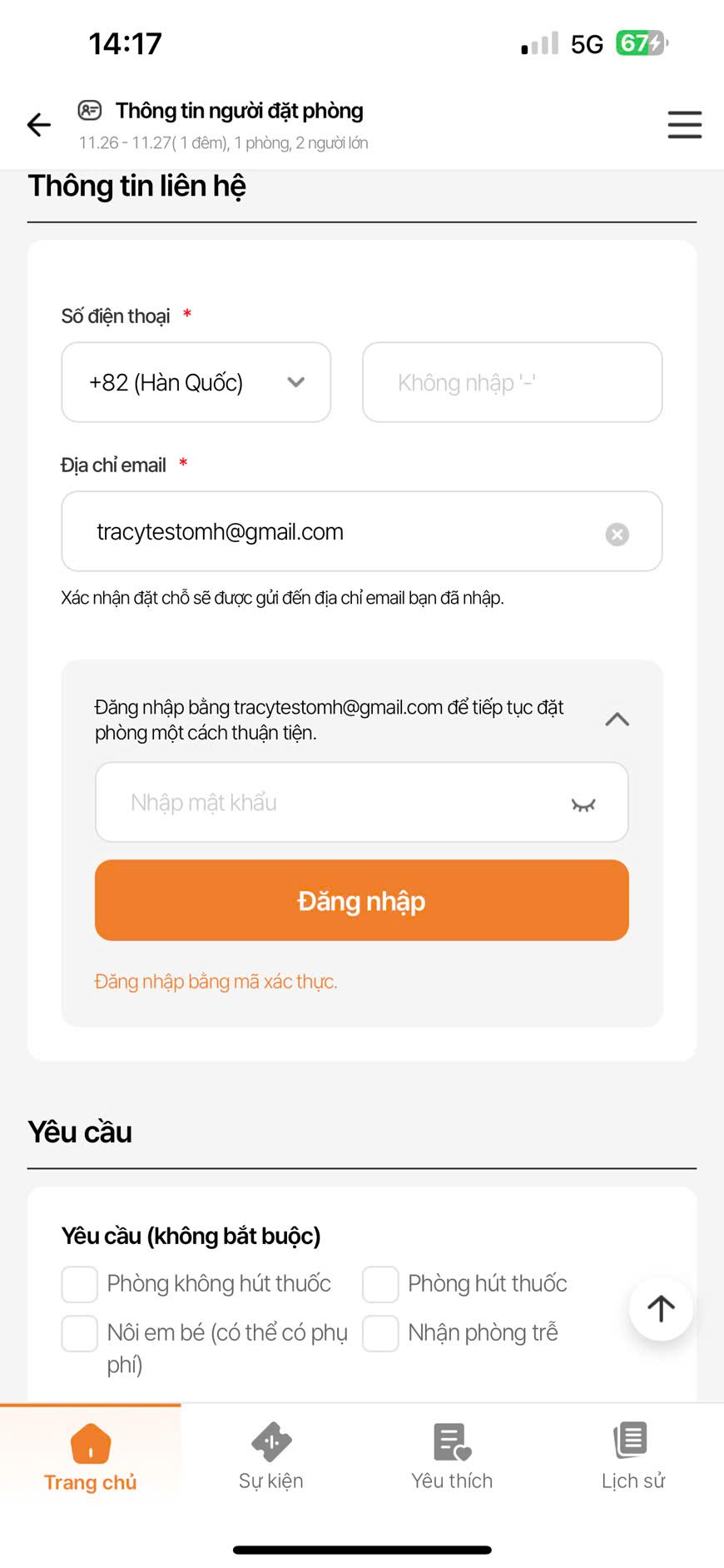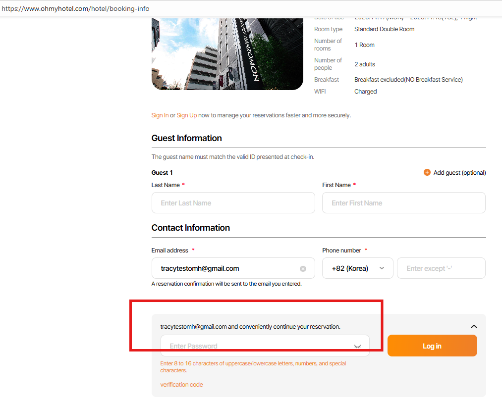As is: <user email> Đăng nhập và tiếp tục đặt chỗ một cách thuận tiện.