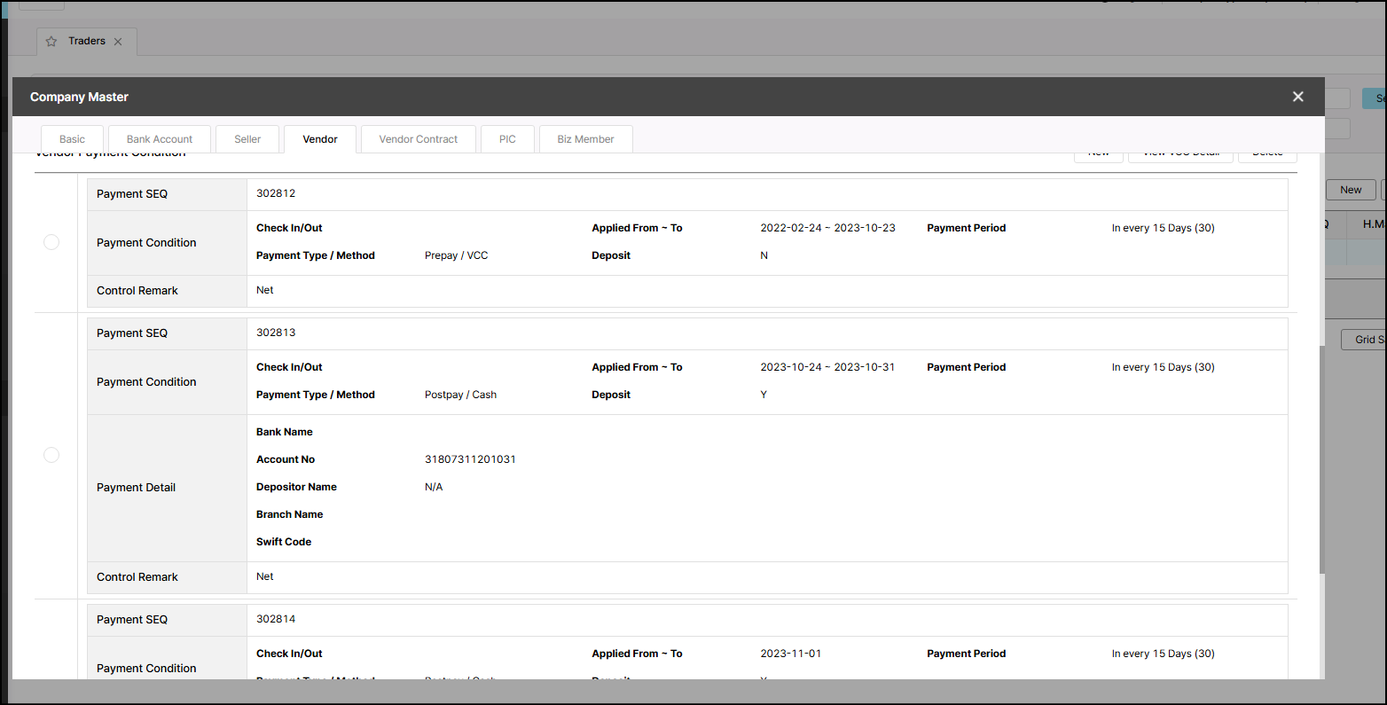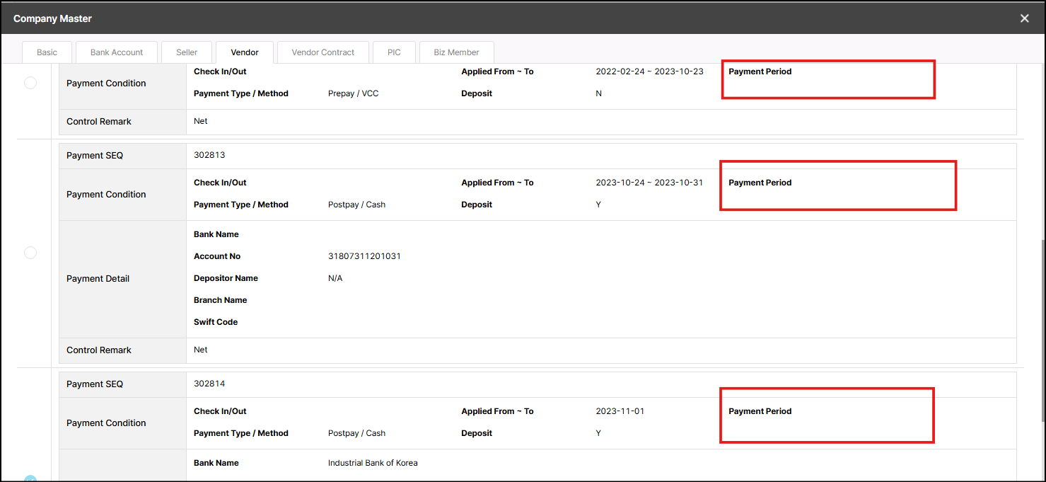 Update payment period for trader La Casa Hotel Gwangmyeong - 601892