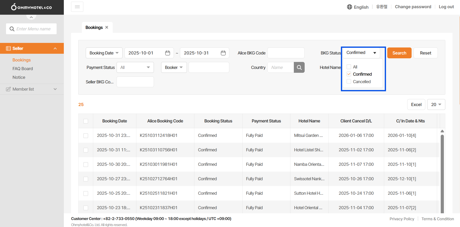 e.g) When user select 'confirmed' status, 'confirmed' and 'reserved' bookings are searched.