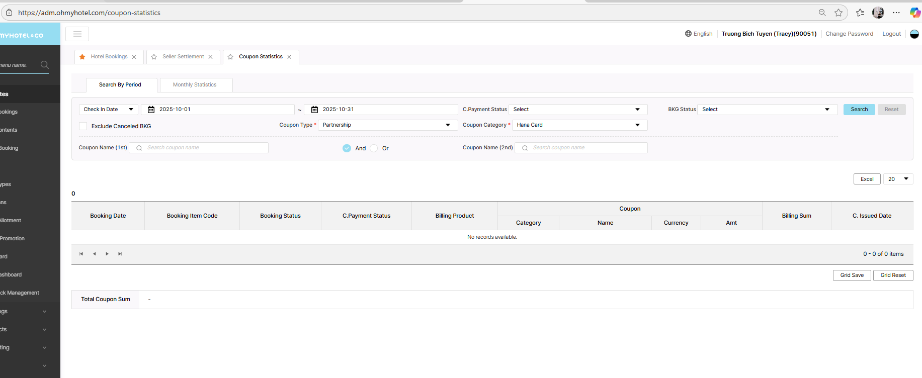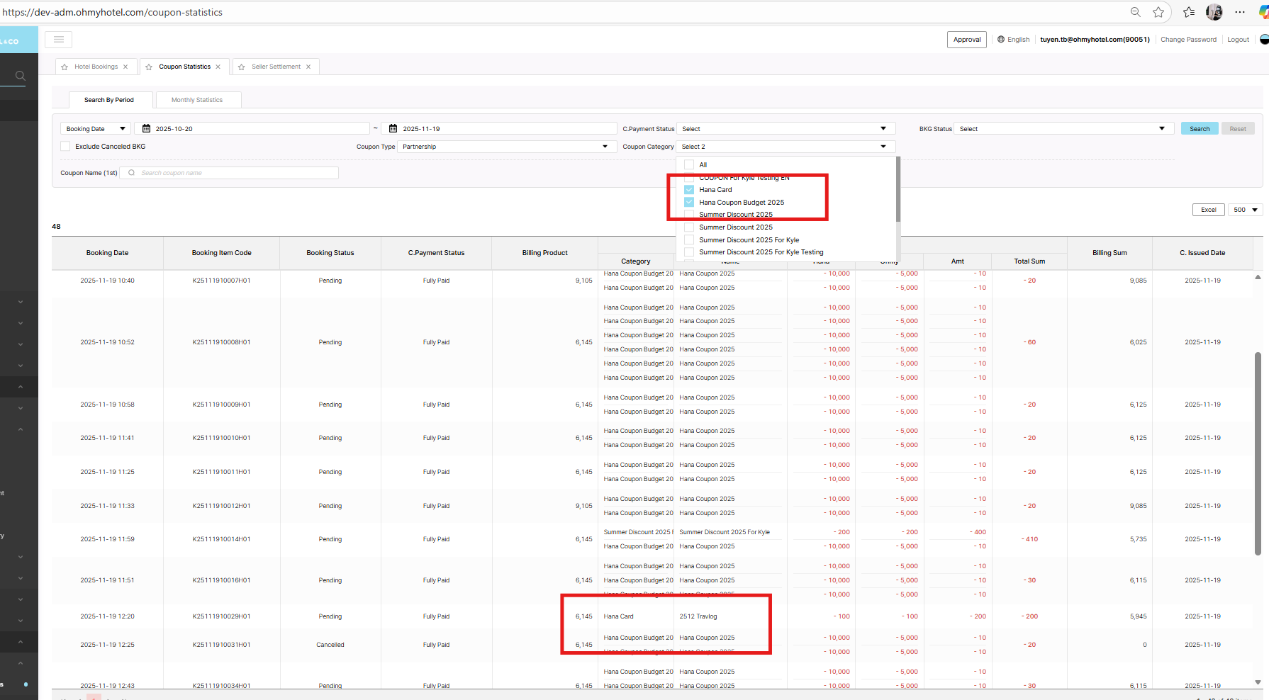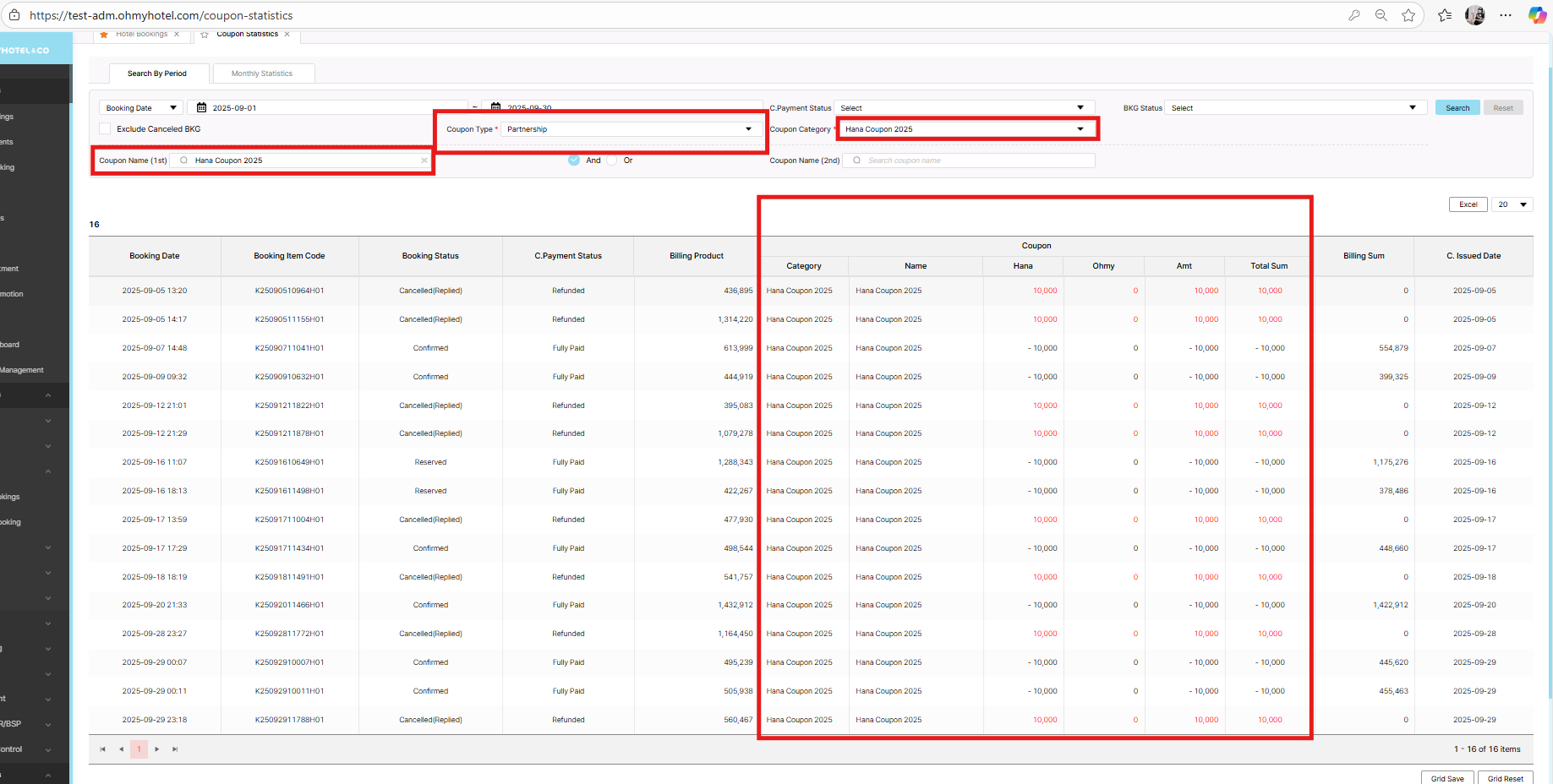 In coupon column, hana column is empty but hana coupon sum amount still count