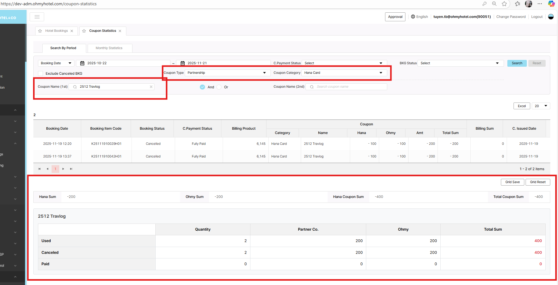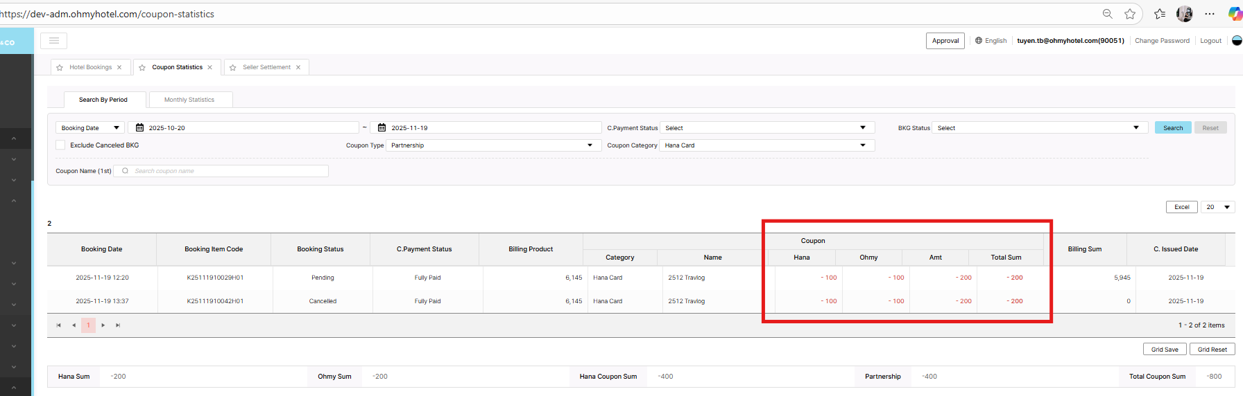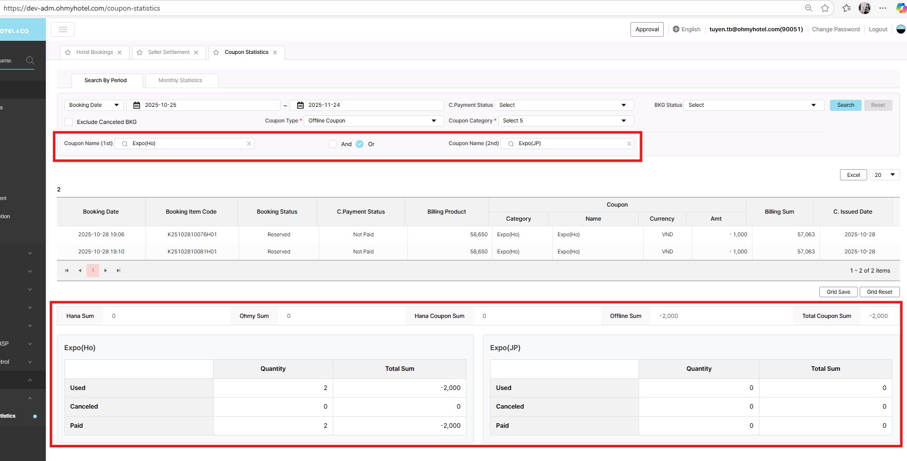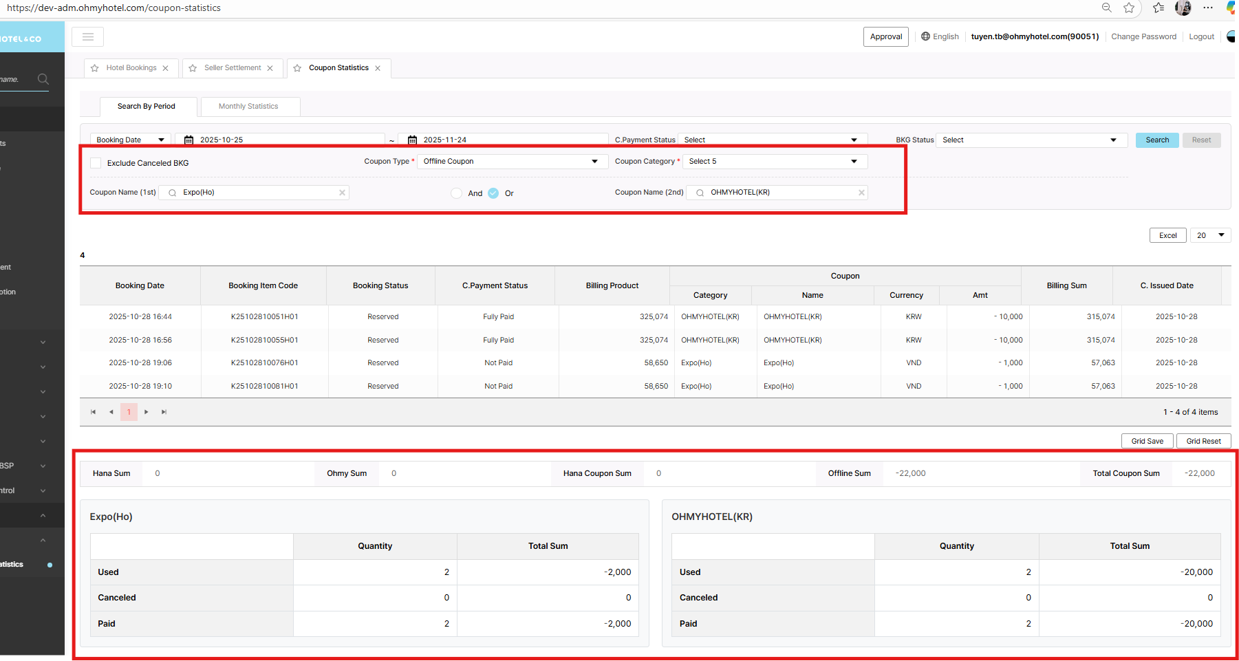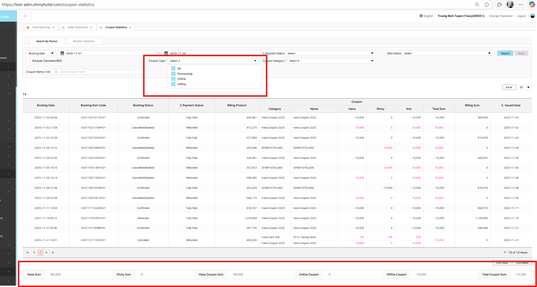 Related to Ellis improvement - QA #2447: [Admin] New Update UI Coupon Statistics - Quantity완료성공(Resolve)Lexi Kim11/26/202511/26/2025