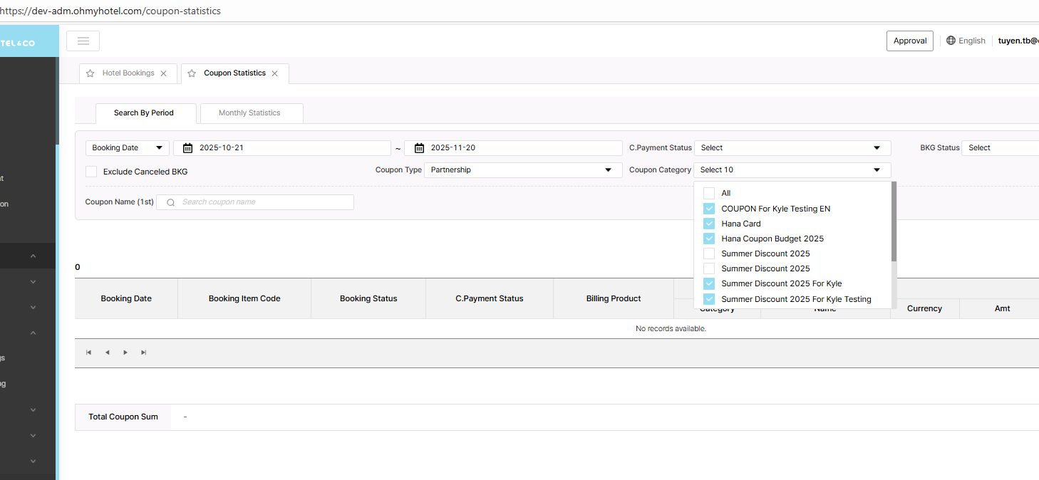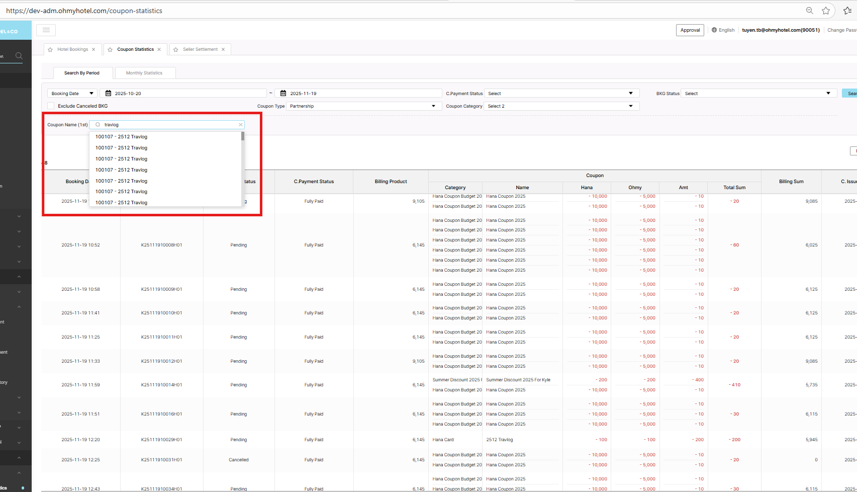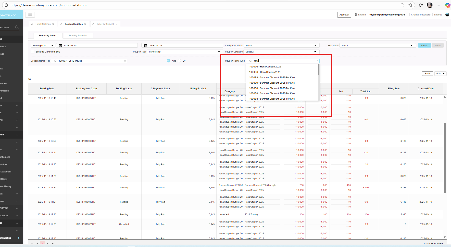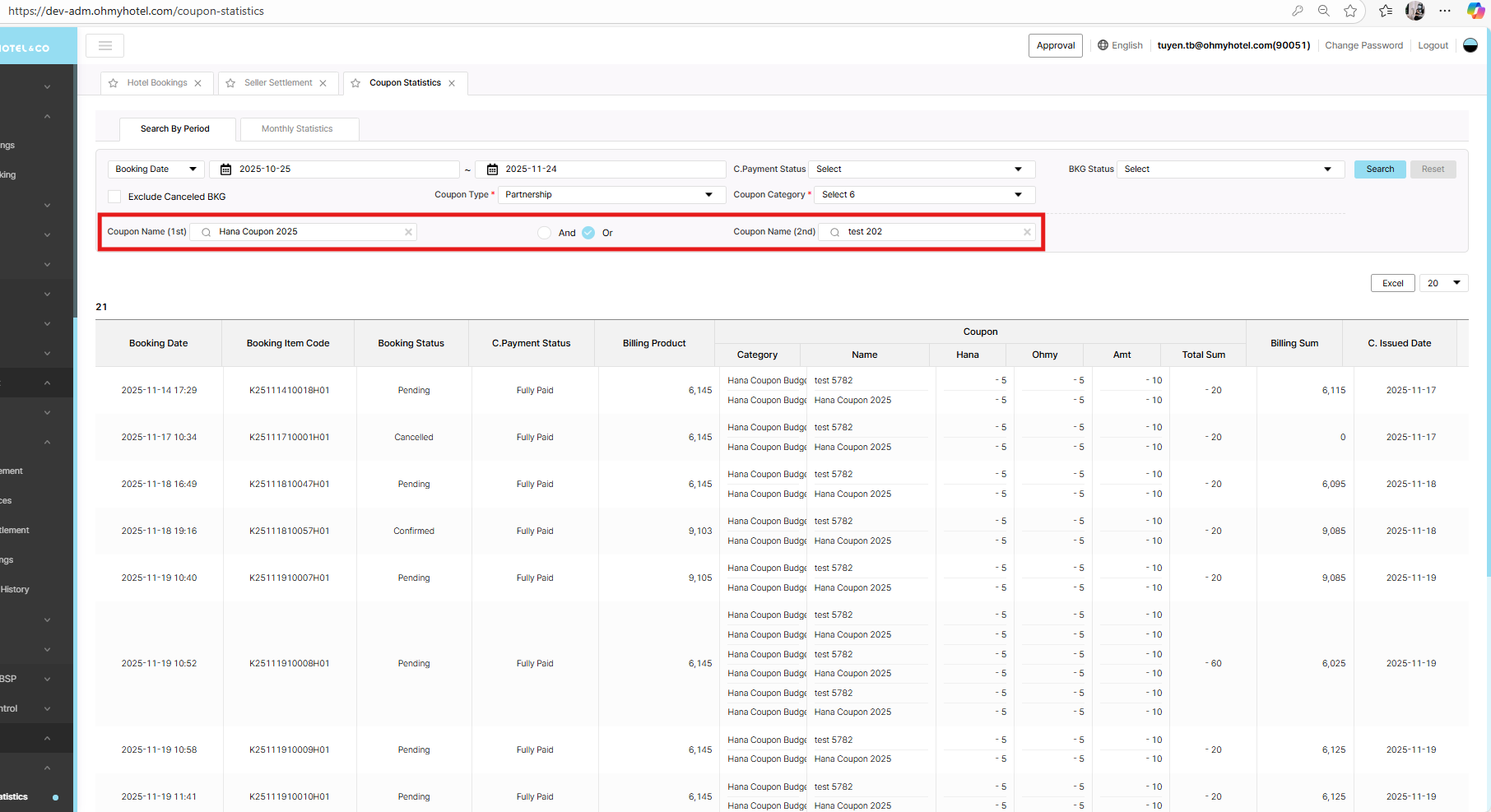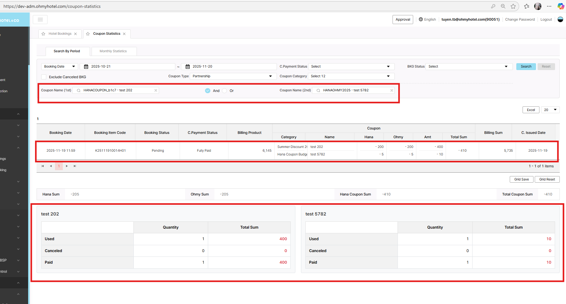 Related to Ellis improvement - QA #2447: [Admin] New Update UI Coupon Statistics - Quantity완료성공(Resolve)Lexi Kim11/26/202511/26/2025