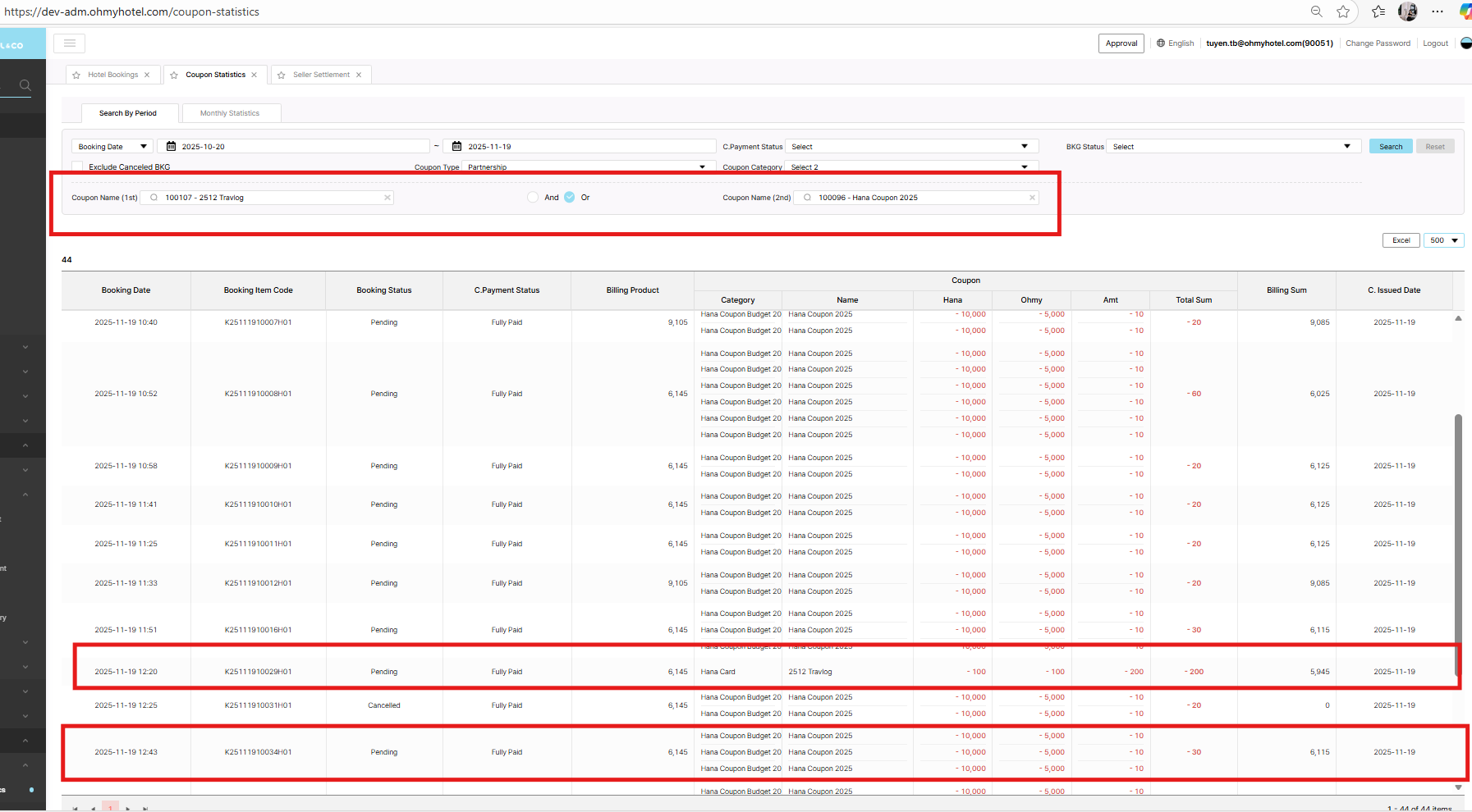 Yêu cầu: Luôn hiển thị tổng số lượng coupon dùng trong period, không phụ thuộc page size.