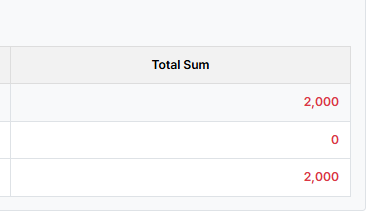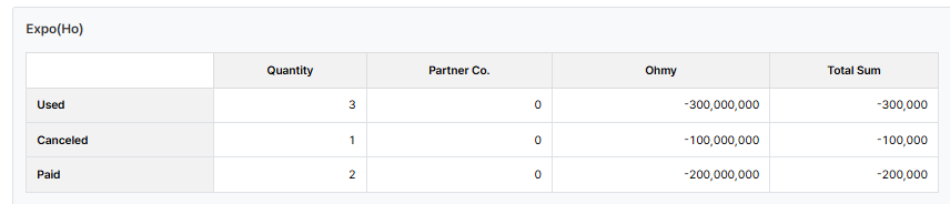 Amount as Total sum/ Ohmy/ partner Co. column need to be displayed by black color & sign "-" before amount