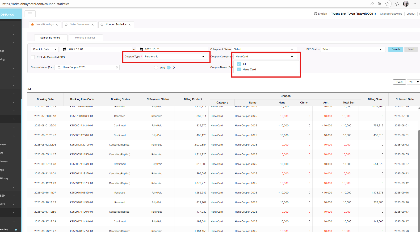 Tất cả coupon đã phát hành trước đây cũng phải được update vào category Hana Card.