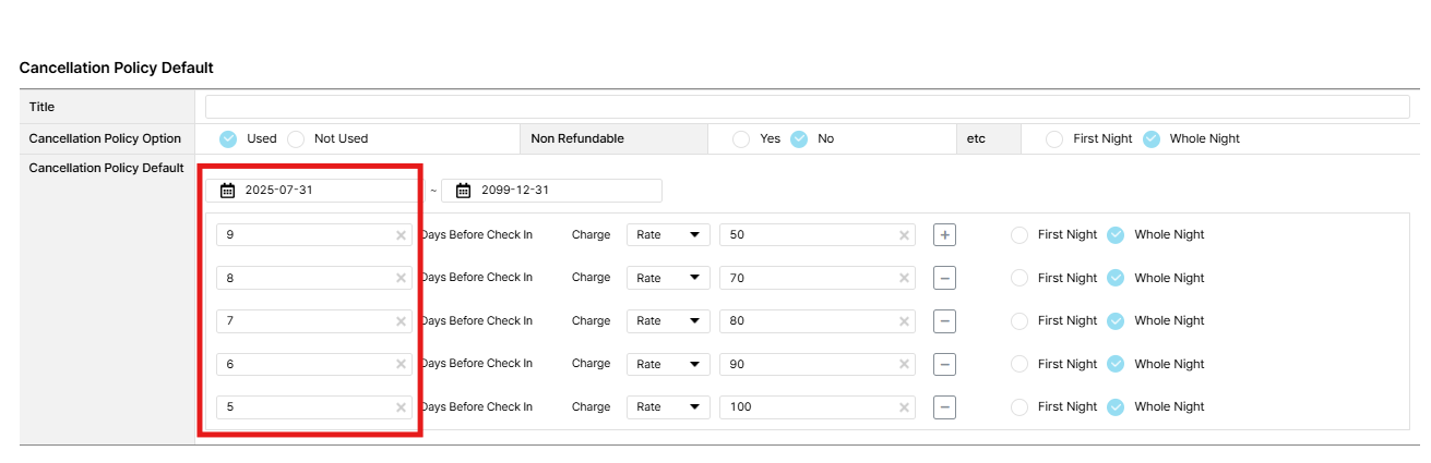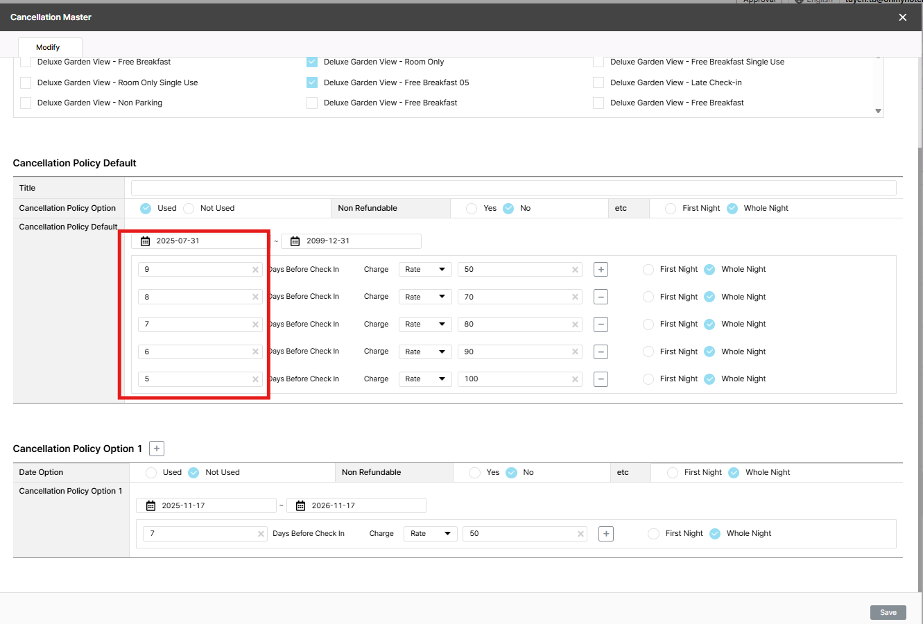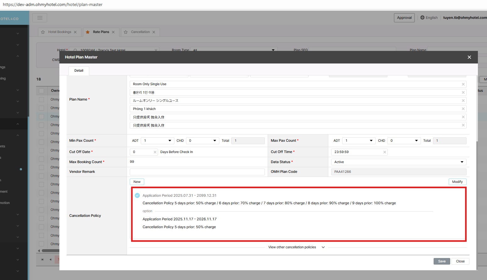 - Nội dung trong chính sách hủy phải được hiển thị giống hoàn toàn ở hotel plan master.