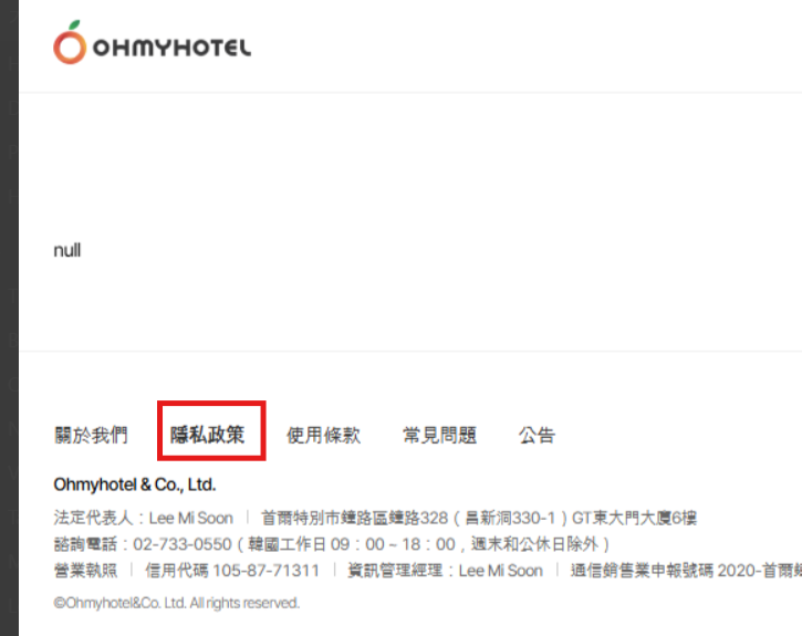 개인정보처리방침 누락