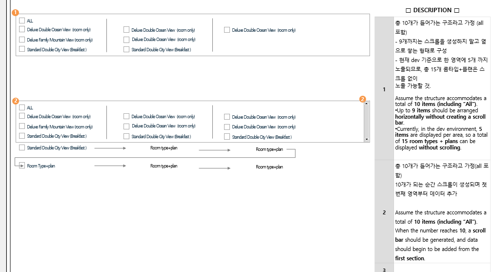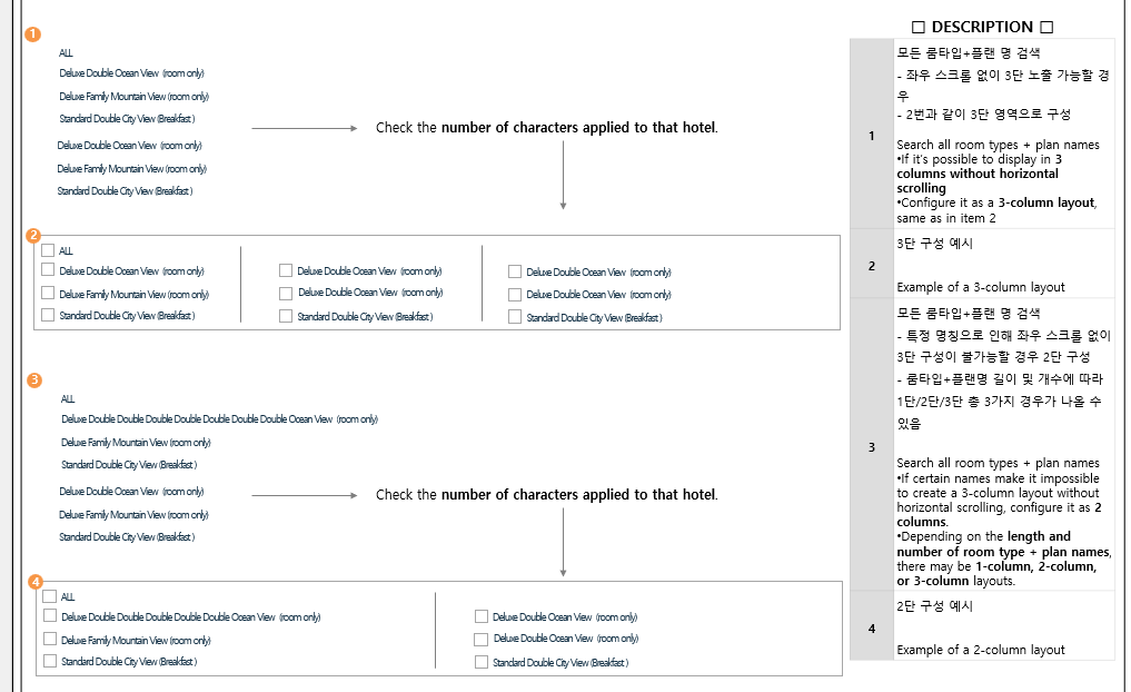 - Tùy thuộc vào độ dài và số lượng room type + plan name,có thể xuất hiện 1 cột / 2 cột / 3 cột.