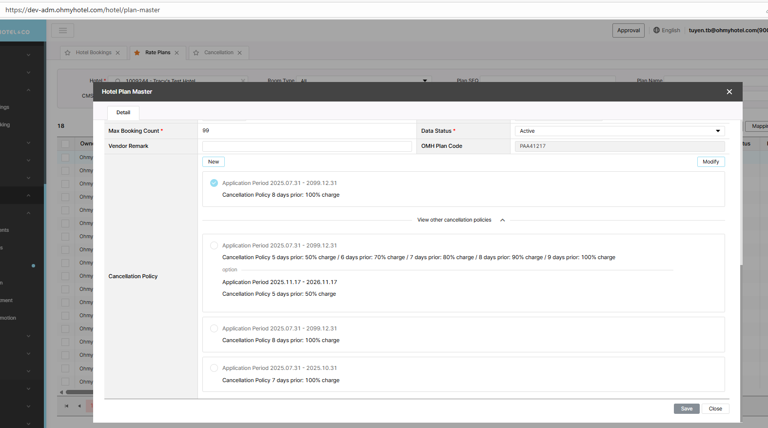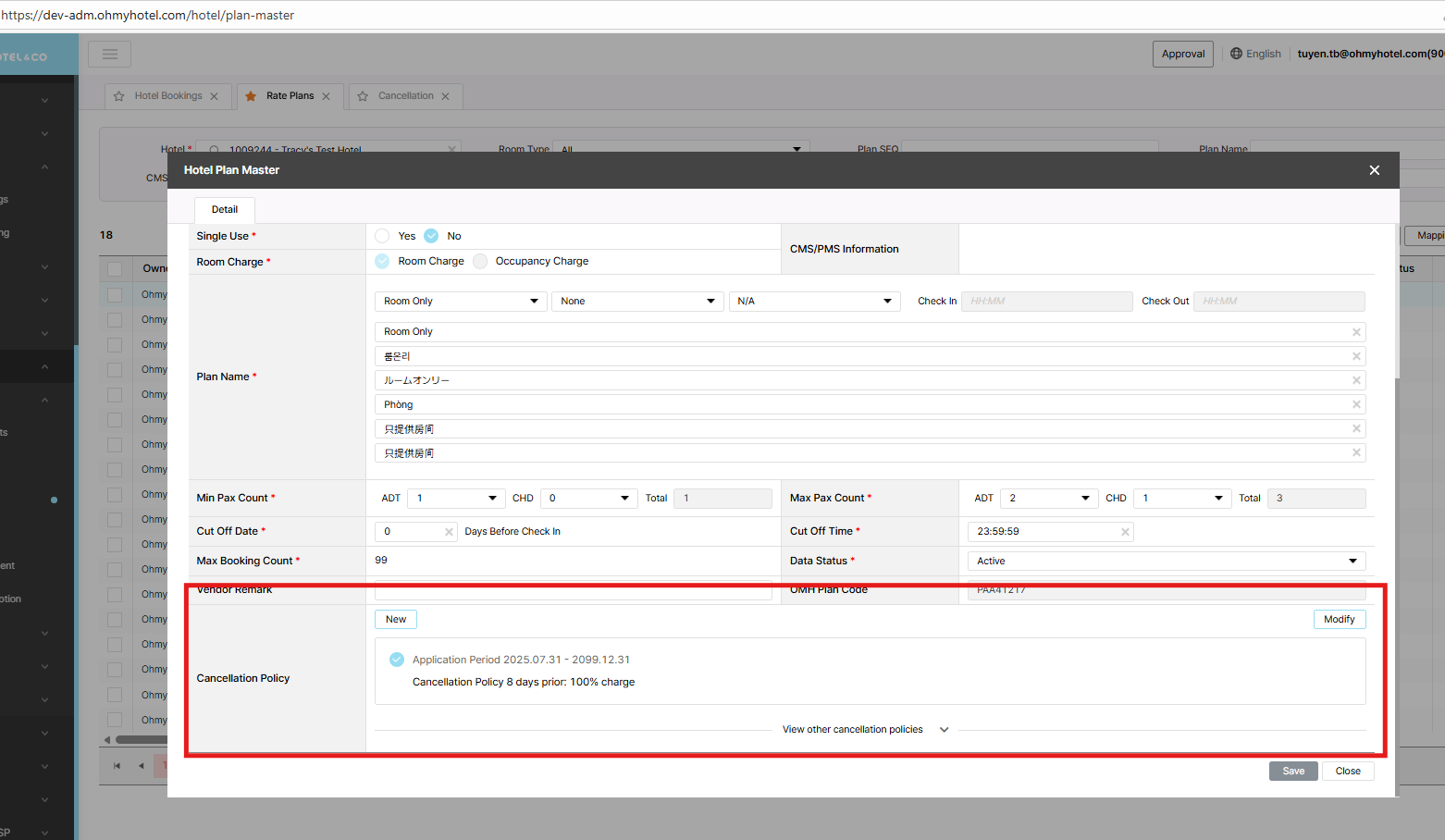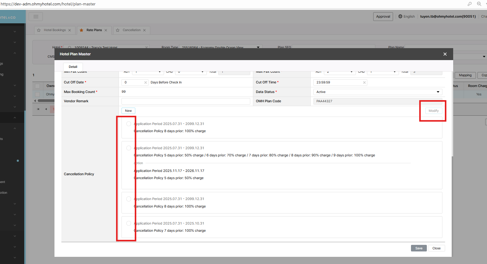 개선(improvement) #954: * Rate Plan improvement​ _CANCELLATION POLICY