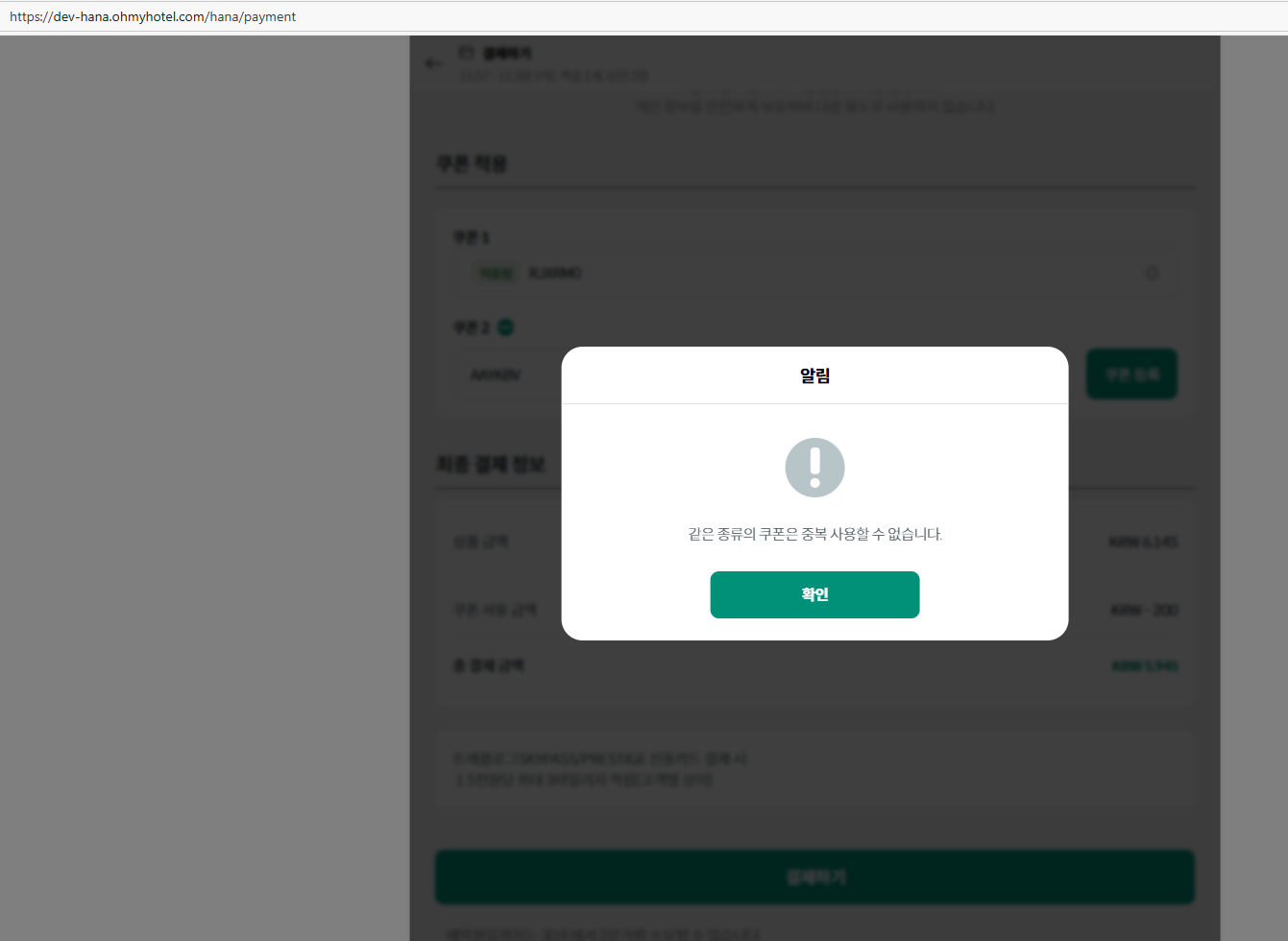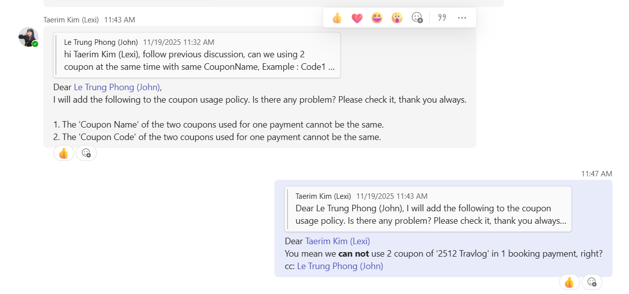 Test on Prod (PC) - fill in 2 coupon under 1 coupon name "Travlog-test", alert displayed & can not use => ok