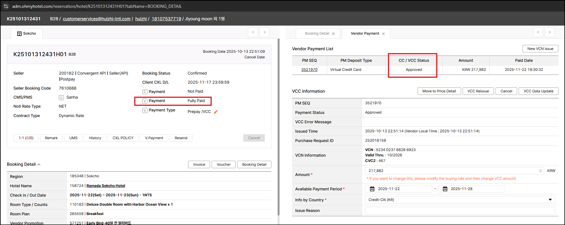 KR team have confirmed with the hotel and KRAC team that the payment has been canceled.