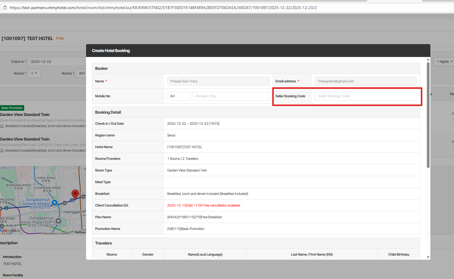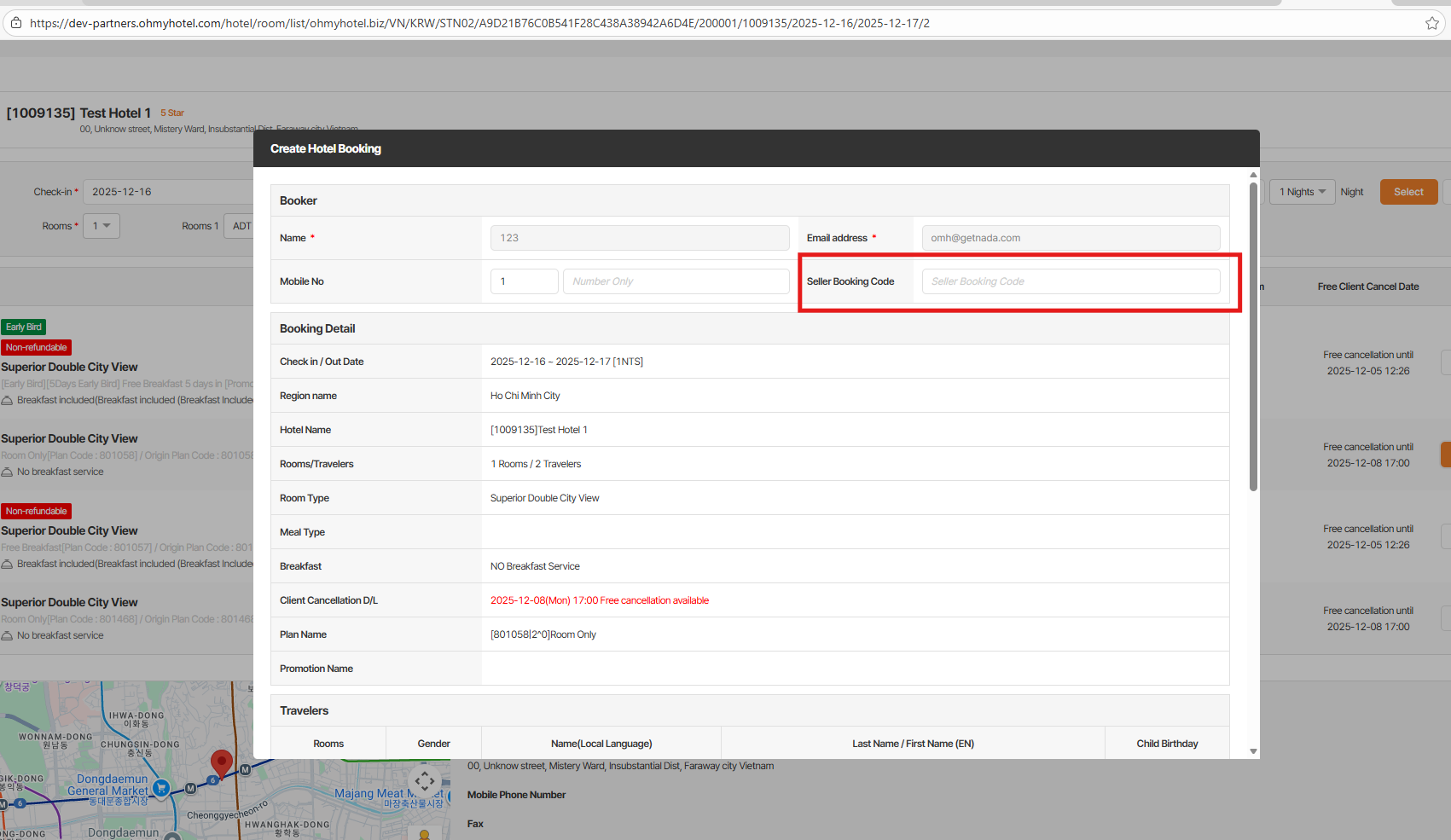 1. Trong trang create booking của Alice – Add thêm ô 'seller booking code'.