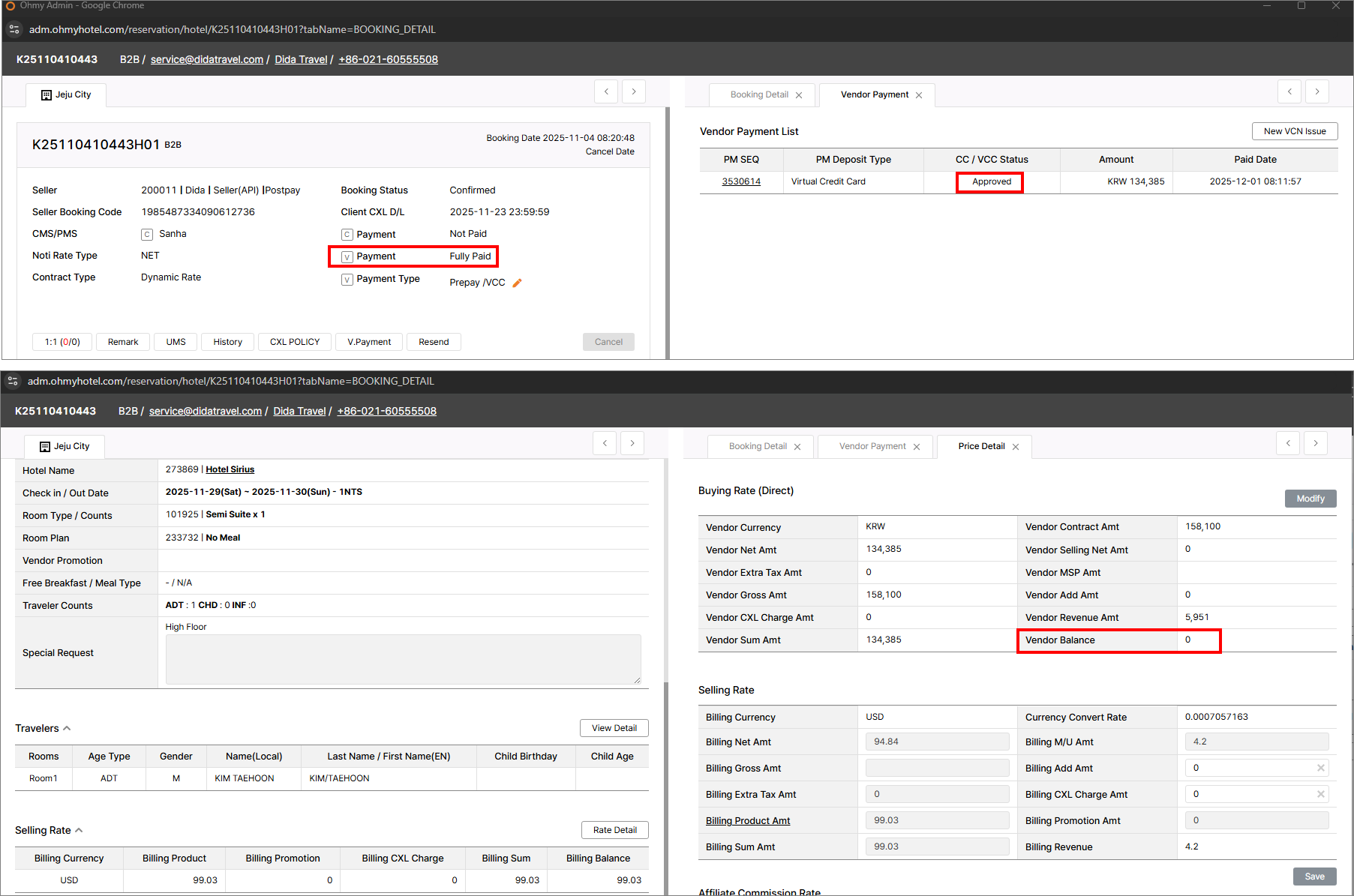 closed[Urgent] Please amend the buying rate K25110410443H01 // Hotel Sirius