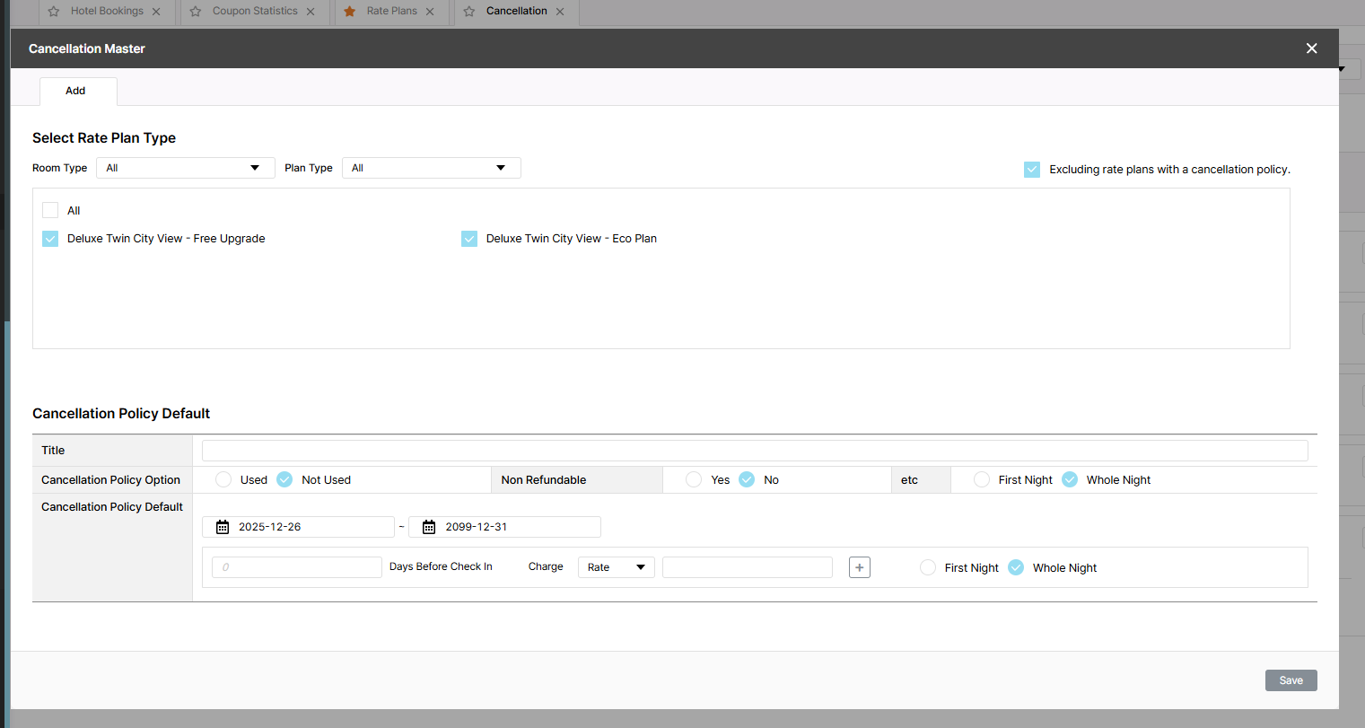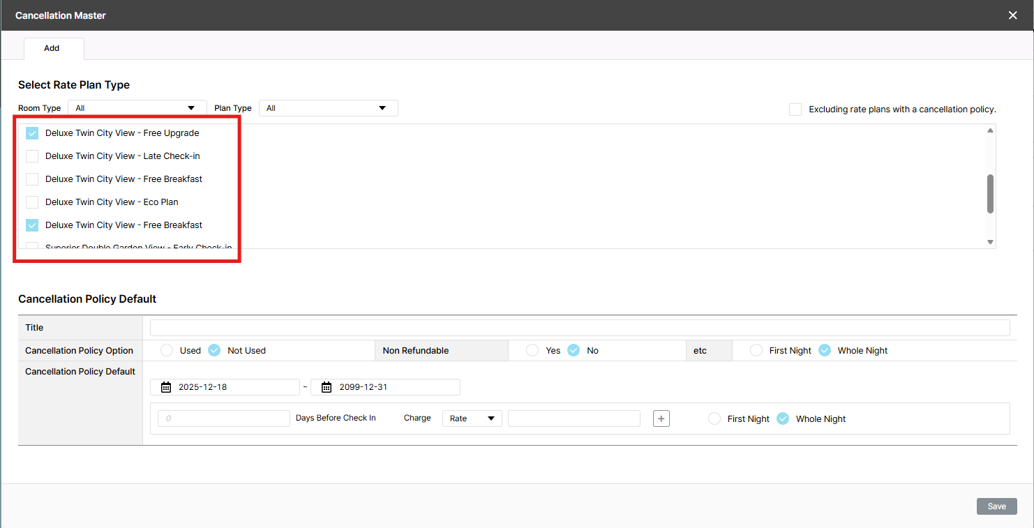 Actual result: Show all rate plan of this hotel & rate plan without registered policy are checked