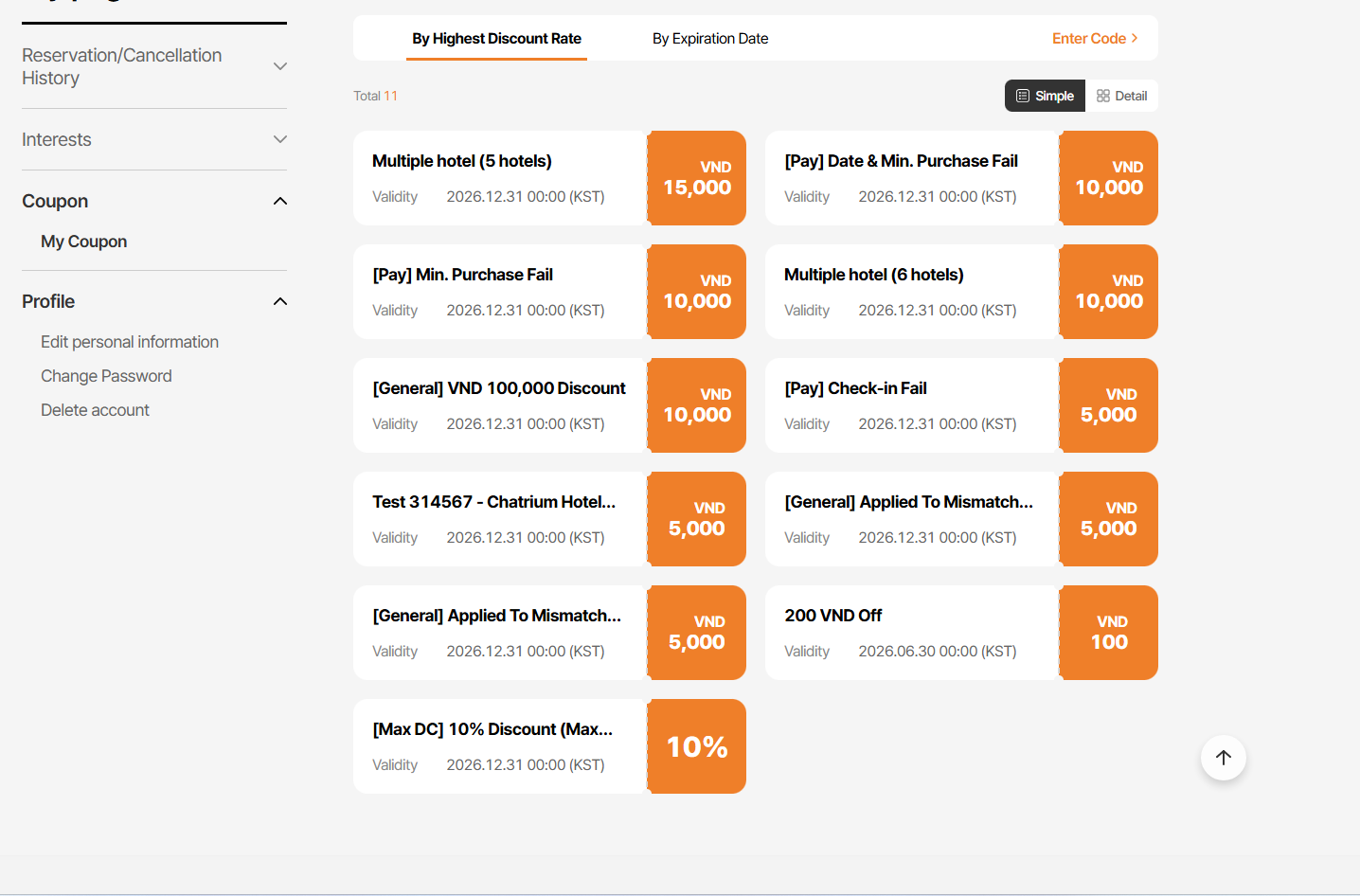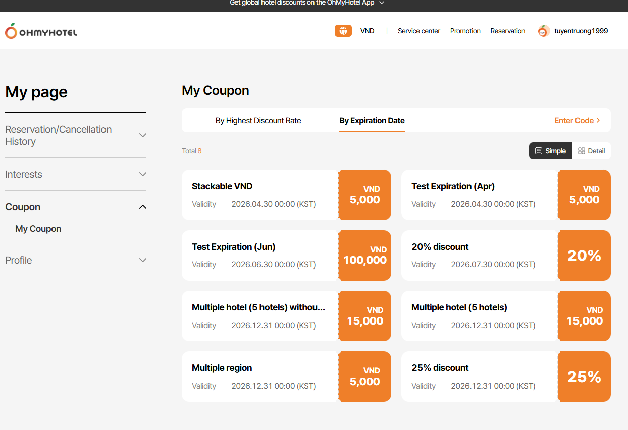 1. PC_Mypage_My coupon > Simple view