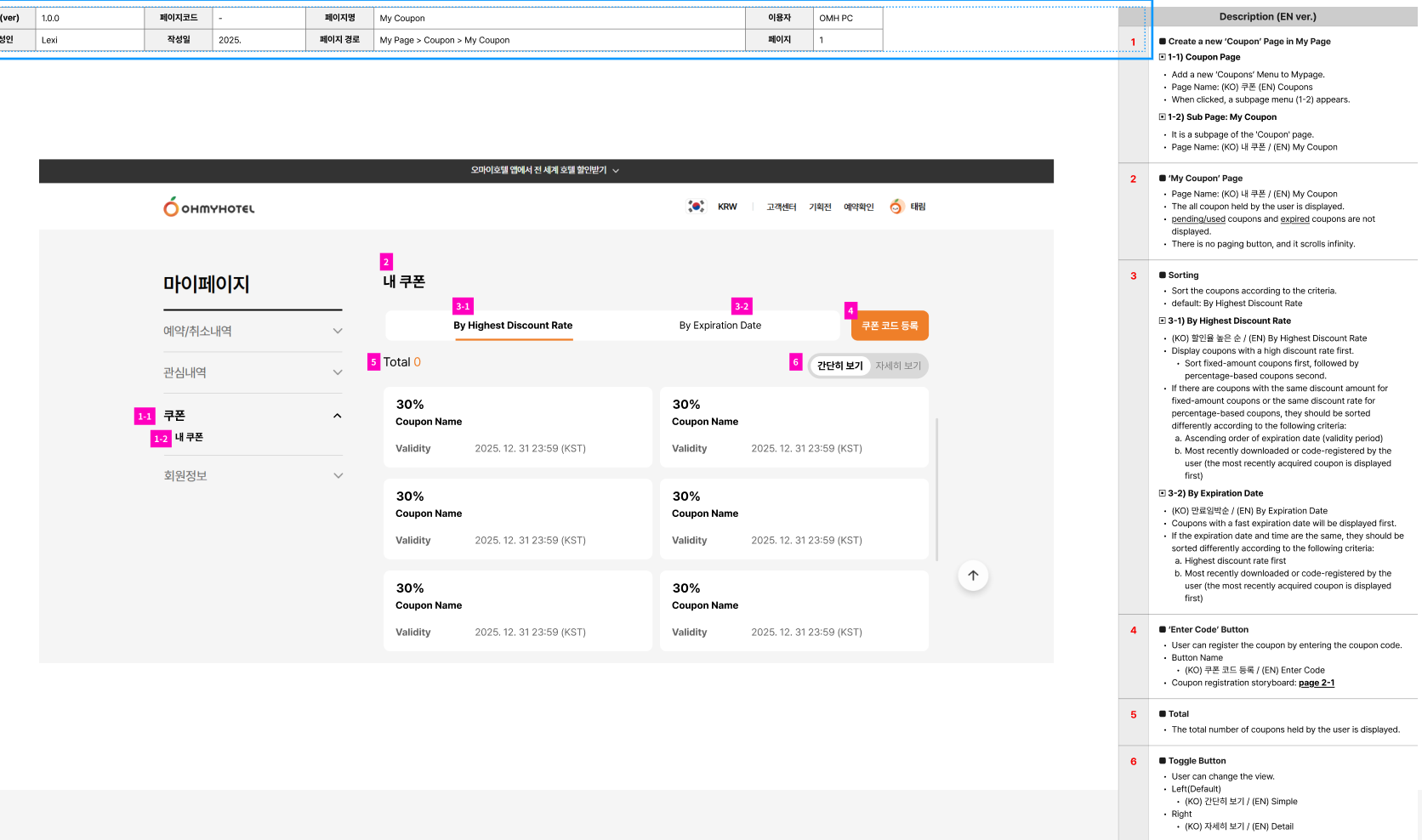 - Subject changed from PC_Mypage_My coupon > Simple view to 1. PC_Mypage_My coupon > Simple view