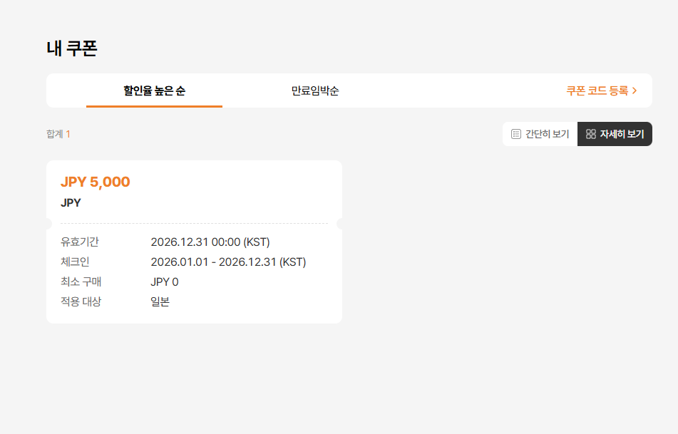 Not set up check in date for coupon but on My page, it still display 2026.01.01 - 2026.12.31 (KST)