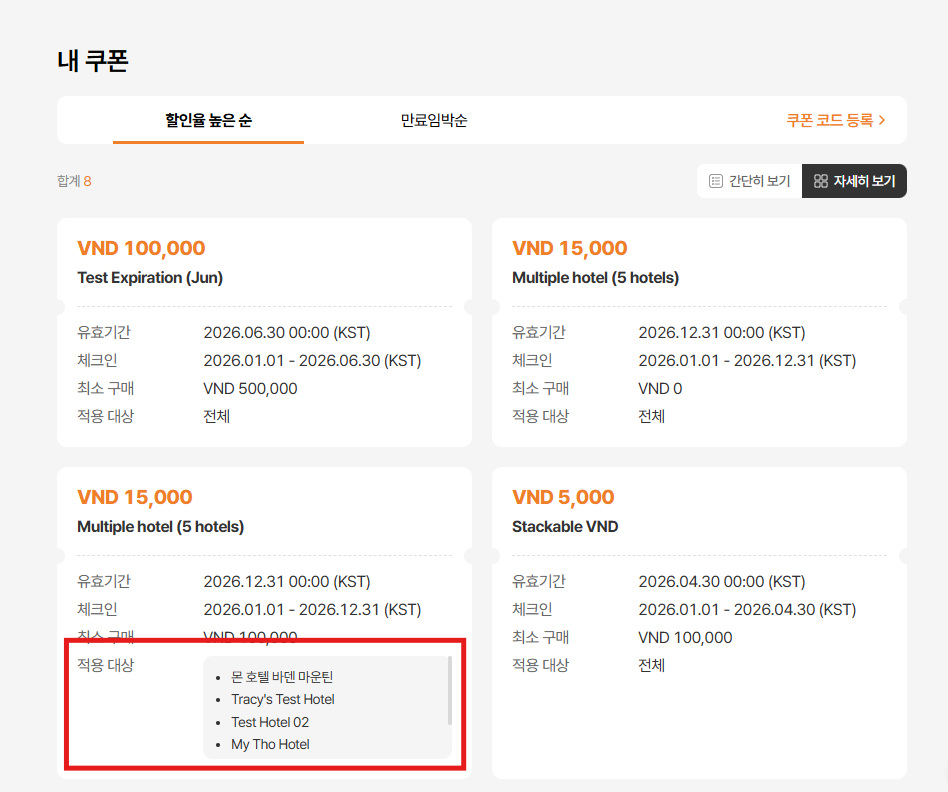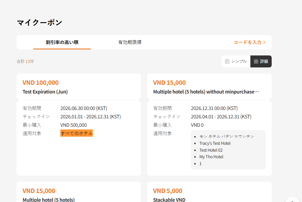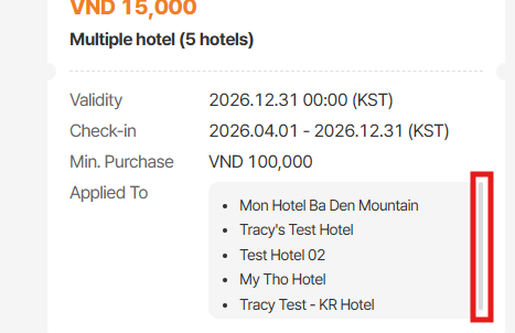 7. Multiple hotels/ regions: need to divide by comma https://www.figma.com/design/Tmlbxh17VqmfuCzsbzN16q/%F0%9F%8E%AB-SB--B2C-Online-Coupon?node-id=5-1261&t=r4A5yPwwxEMzVlg1-1