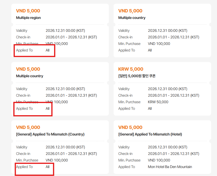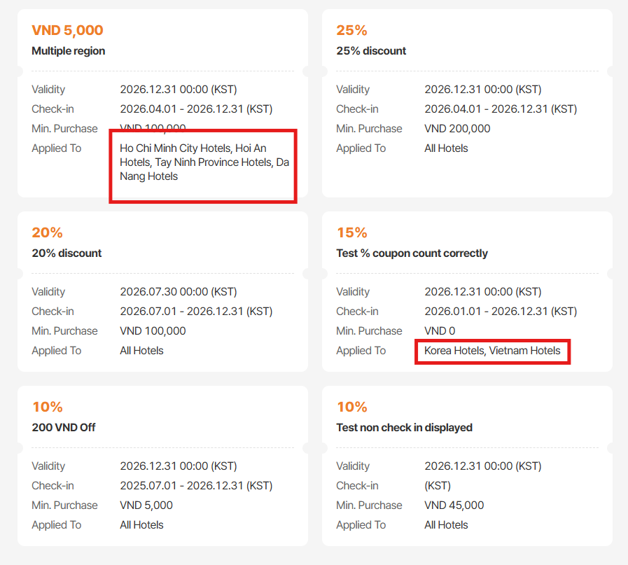 E.g Multiple hotel (5 hotels) coupon - check in date is 1 Apr - 31 Dec 2026 but on Coupon card displayed 1 Jan - 31 Dec 2026 => still failed