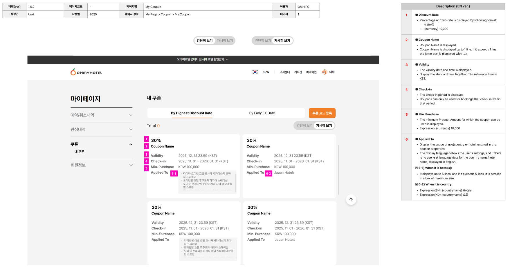 - Subject changed from PC_Mypage_My coupon > Detail view to 1. PC_Mypage_My coupon > Detail view