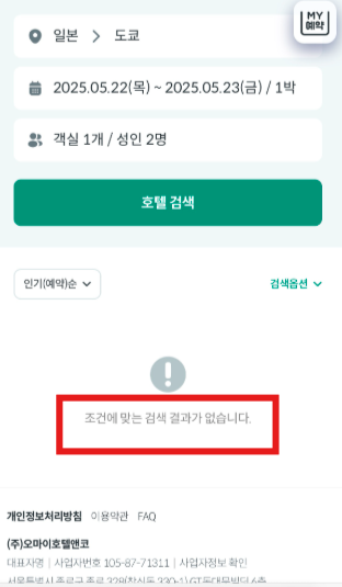 다른 날짜 또는 다른 호텔로 검색해 주세요."