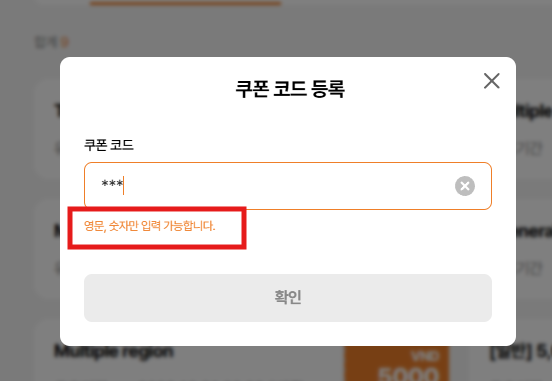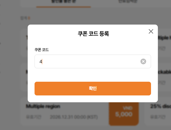 (KO) 쿠폰 코드를 입력하세요.