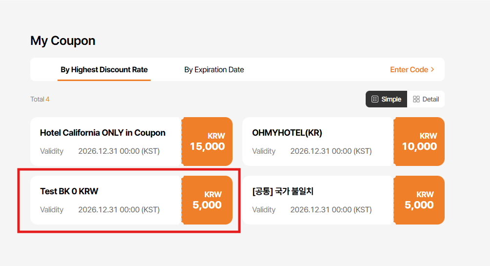 Coupon code: 200058CODE - Test BK 0 KRW